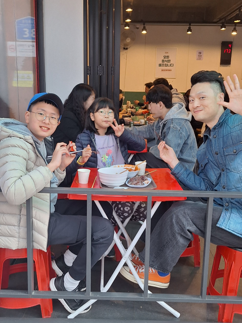 '아, 이게 가능하다고? 이렇게 아이들과 같이 떡볶이를 먹는 날이 오긴 오는구나.' 그토록 꿈꾸던 순간이 이렇게 막상 현실로 다가오다니, 마음이 뭉클했다. 물론 전에도 즉석떡볶이 집을 같이 간 적이 있긴 했지만, 둘째 아이는 잔치국수를 먹었기에 네 식구가 완전체로써 떡볶이를 즐긴 건 아니었다. 하지만 이 날은 감격스럽게도 다 같이 떡볶이를 먹었기에 역사적인 날이었다.