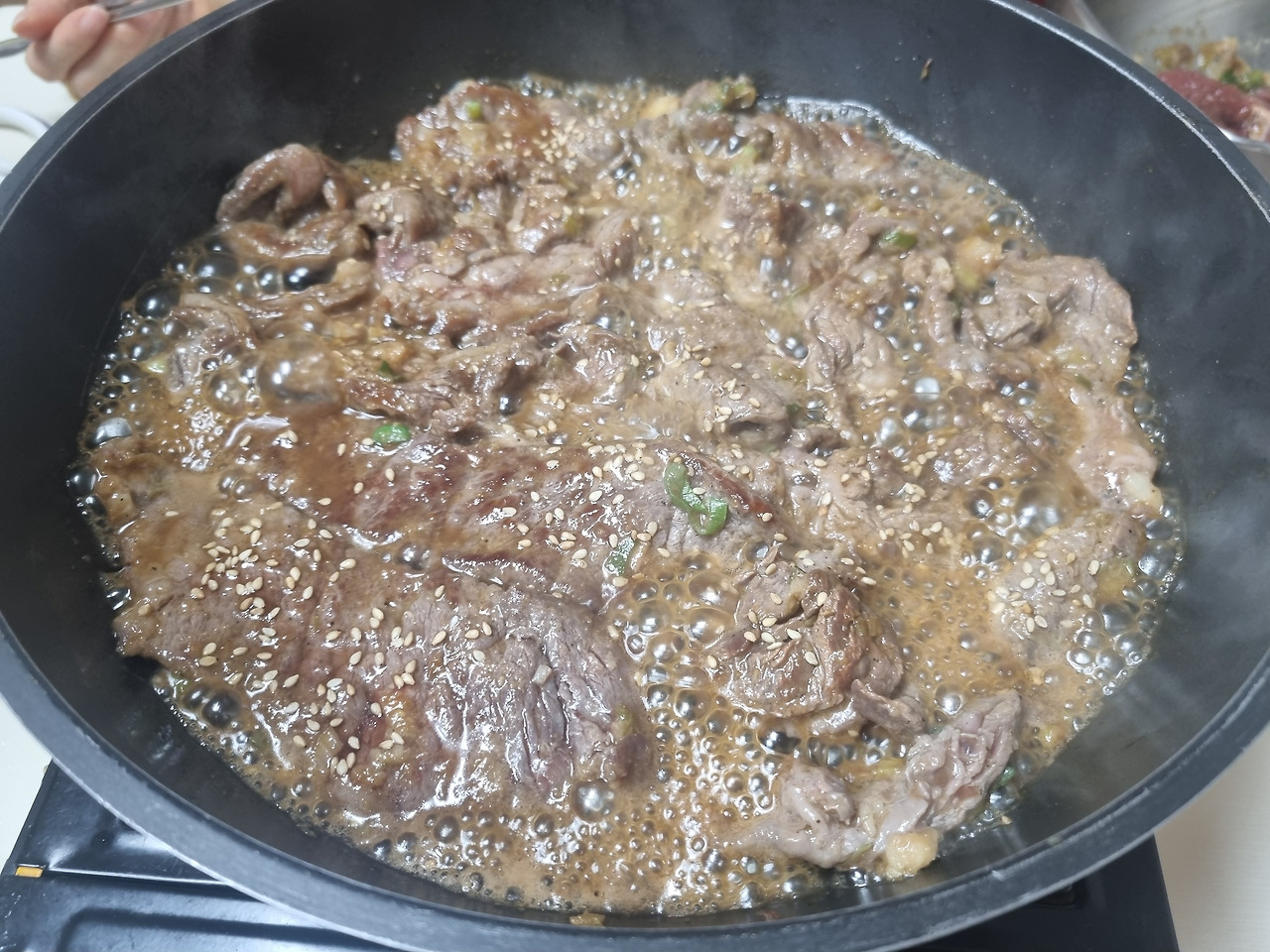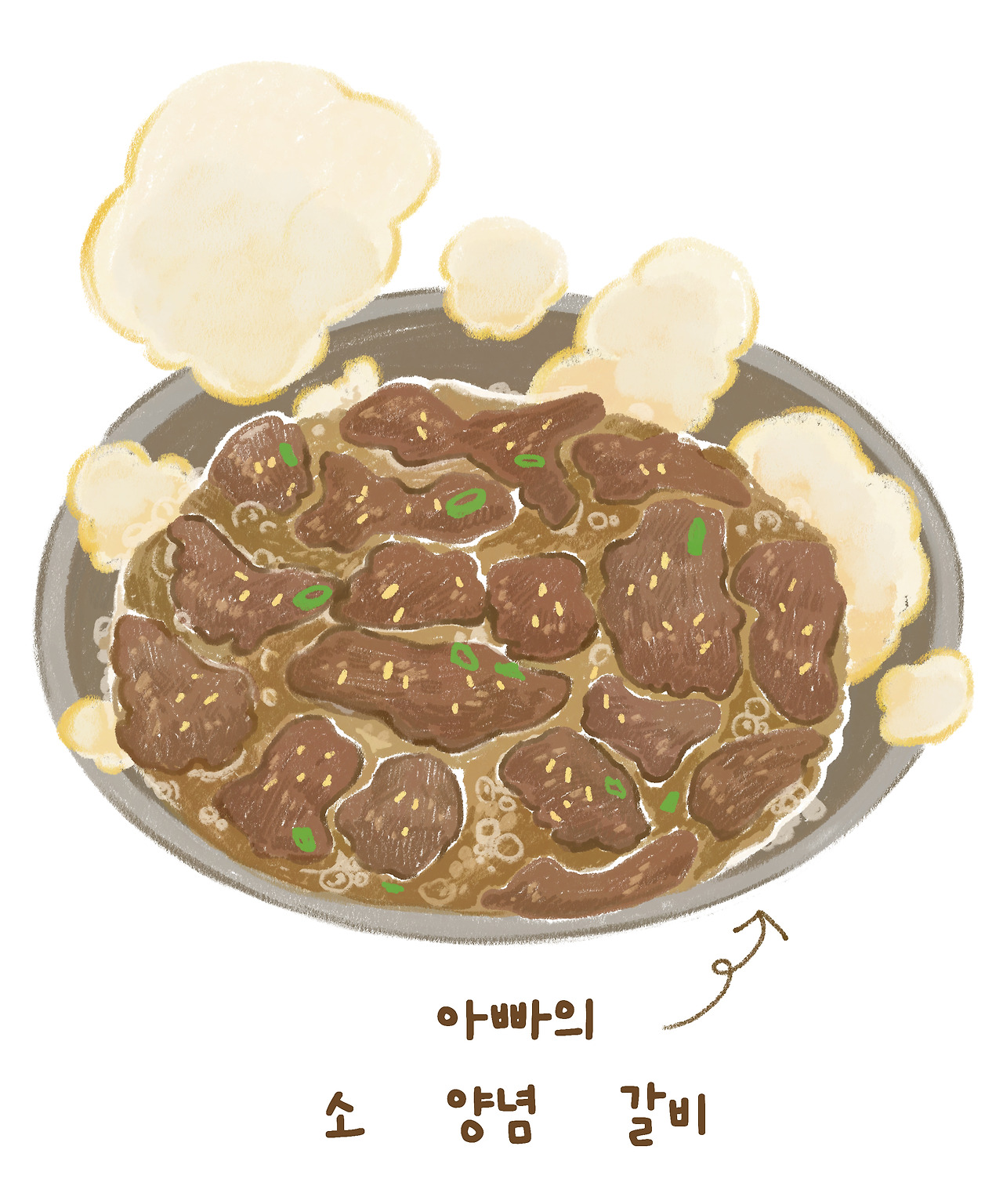 아빠는 소 양념갈비 위에 인삼을 넣지 못한 것이 아쉬웠던 것 같습니다. 자꾸만 인삼을 썰어 넣었어야 했다고 말했습니다. 데코용으로 아주 예뻤을 거라고요. 근데 집에 인삼은 없어서 양념 갈비 위에 얹지 못했습니다.