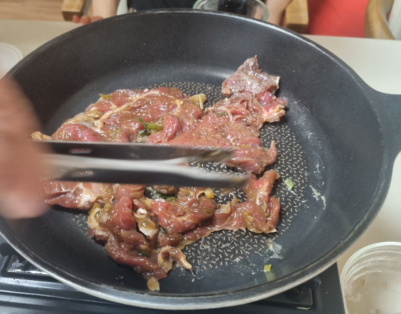 무화과 아몬드 레시피를 올린 날이었습니다. 이런 것을 엄마와 같이 만들어보기로 했다고 아빠에게 보여주었습니다. 그리고 다음날인 토요일 저녁, 아빠가 요리를 했습니다. 토요일은 제가아빠보다 퇴근이 늦습니다. 엄마도 저녁 운동을 갔다가 저와 함께 올라오는 터라 아빠가 저녁을 만들어주는 날입니다. 특별한 저녁을 먹는 토요일. 저와 엄마는 아파트 엘리베이터를 올라가면서 과연 오늘 저녁은 무엇일지 셀렘을 안고 집에 돌아갑니다. 오늘의 저녁은 소 양념 갈비입니다. 아빠는 사온 지 며칠이 지난 고기라서, 구이용이지만 양념을 하기로 했답니다.