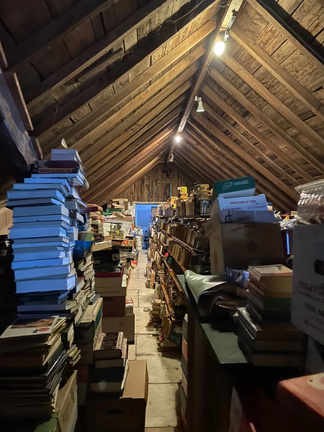 책장 사이사이, 먼지 위로 빛이 반짝이고