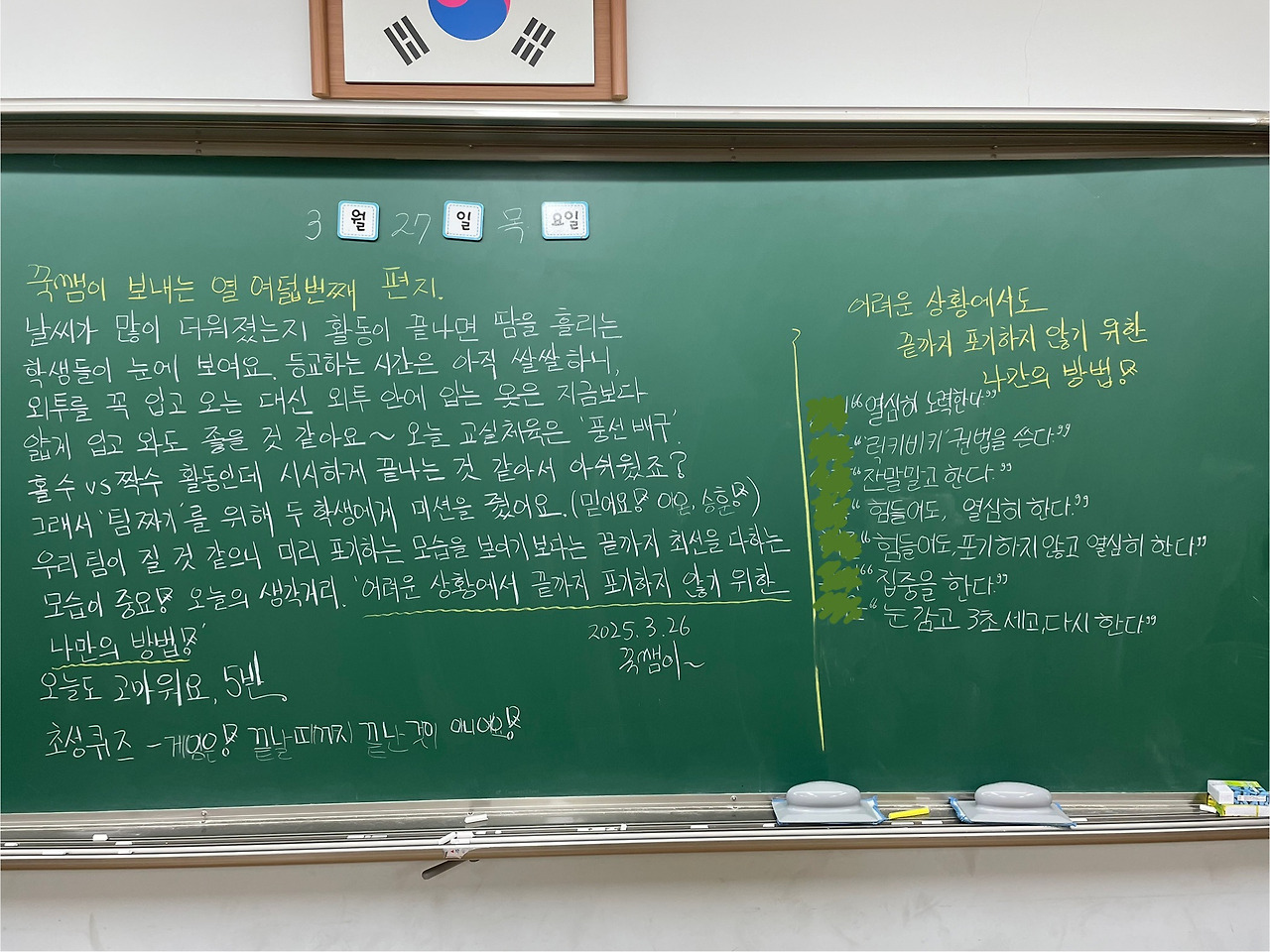 오늘도 이렇게 편지쓰기를 통해 하는 학급경영이 힘을 얻어가고 있어요.