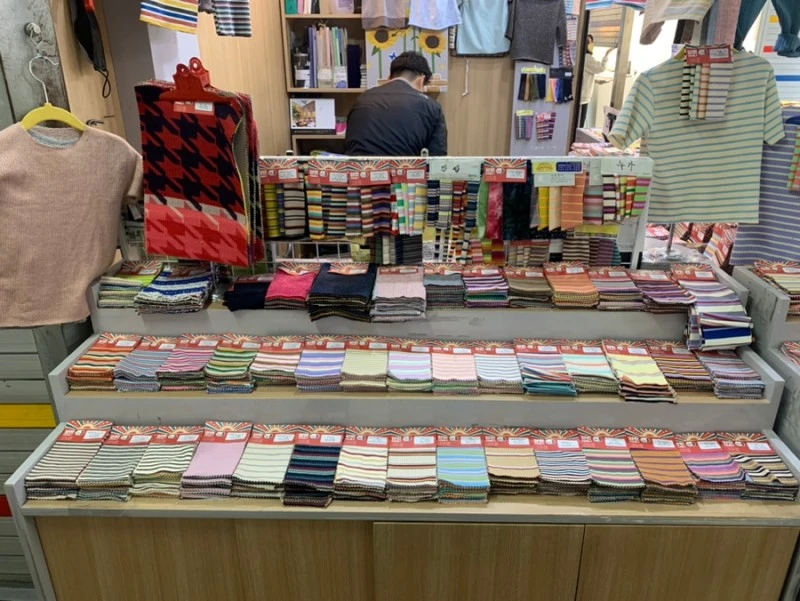 그중 인상적인 것은 ‘스왓치’라는 개념이었다. 스왓치는 원단을 작은 크기로 잘라 모아놓은 일종의 미니 샘플인데 그 모양과 형태는 매장마다 모두 다르다. 수백 개가 넘는 다양한 매장 거기에 수십 수백 개가 놓여있는 스와치를 보면 이 시장의 거대한 규모를 새삼 느끼게 된다. 옷의 특성상 원단은 직접 만져보고 손으로 느껴봐야 제작이 가능하므로 많은 디자이너들이 (혹은 패션디자인과 학생 등...) 이곳을 돌며 수많은 스왓치를 만져보고 얻어간다. 그들은 계획된 디자인과 구상, 계절 등.. 가까운 미래에 나올 새로운 패션을 선도하기 위해 손바닥 만한 스와치를 보며 영감을 얻기도 하며 스왓치가 누군가에게는 작은 손바닥 만한 천조각일지 모르지만 이들에게는 숲을 그려나가기 전 중요한 나무일 수 있다.