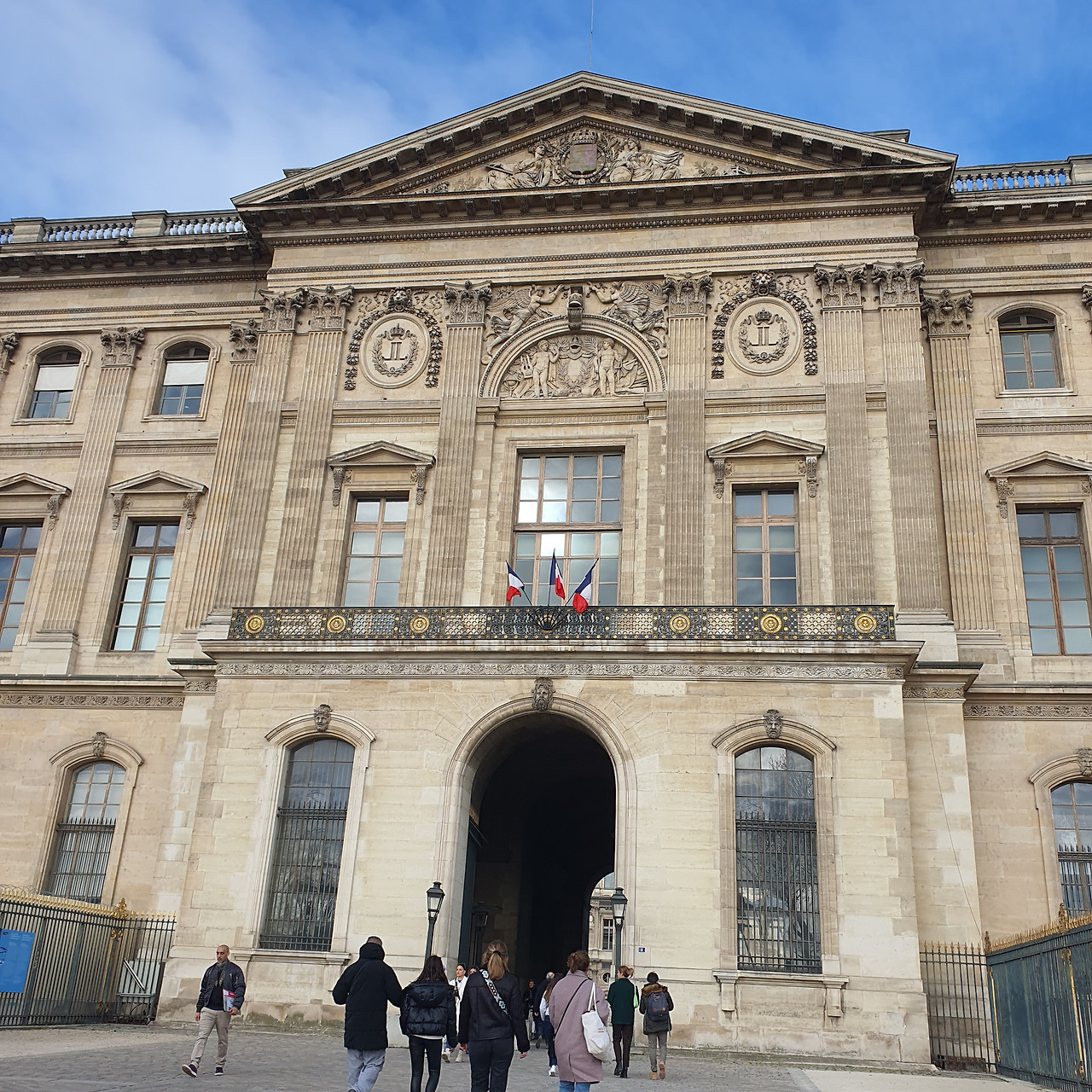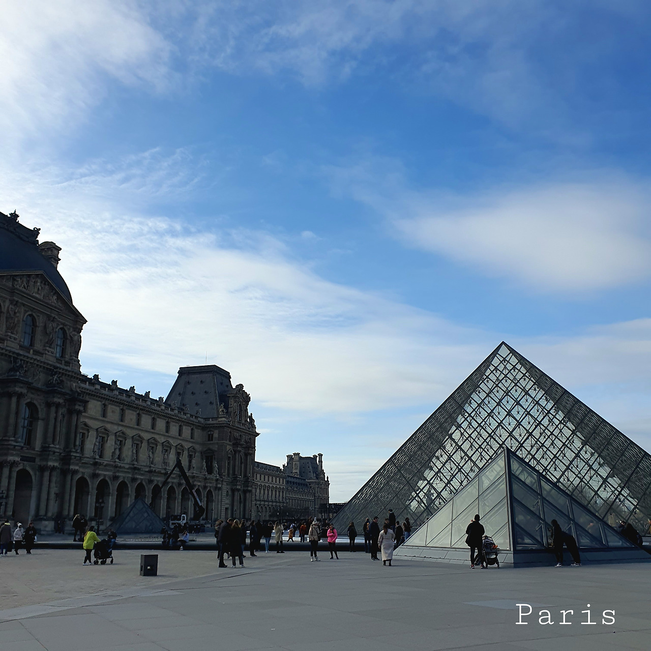 만족스러운 식사를 마치고, 본격적으로 파리 시내 구경에 나섰다. 다행히 주변 명소와 가까워서 뚜벅이에게는 최적이었다. 가장 먼저, 루브르 박물관(Musée du Louvre)에 갔다. 루브르 박물관에 들어가기 전 관문인 Cour Carrée를 지나쳐야 했는데 오래되고 웅장한 건물들에 탄성이 저절로 나왔다. 루브르 박물관 피라미드 앞에서는 역시나 관광객이 많았고, 피라미드 아래에도 사람들이 빽빽하게 모여있었다. 구름처럼 몰려든 인파를 보기만 해도 숨이 턱 막혔다. 내심 박물관 표를 안 사길 잘했다는 생각이 들었다. 파리에서 고작 2일을 머무는 데, 루브르 박물관을 구경하려면 턱없이 부족한 시간일 것 같아서 이번 여행에서는 과감하게 패스했다.