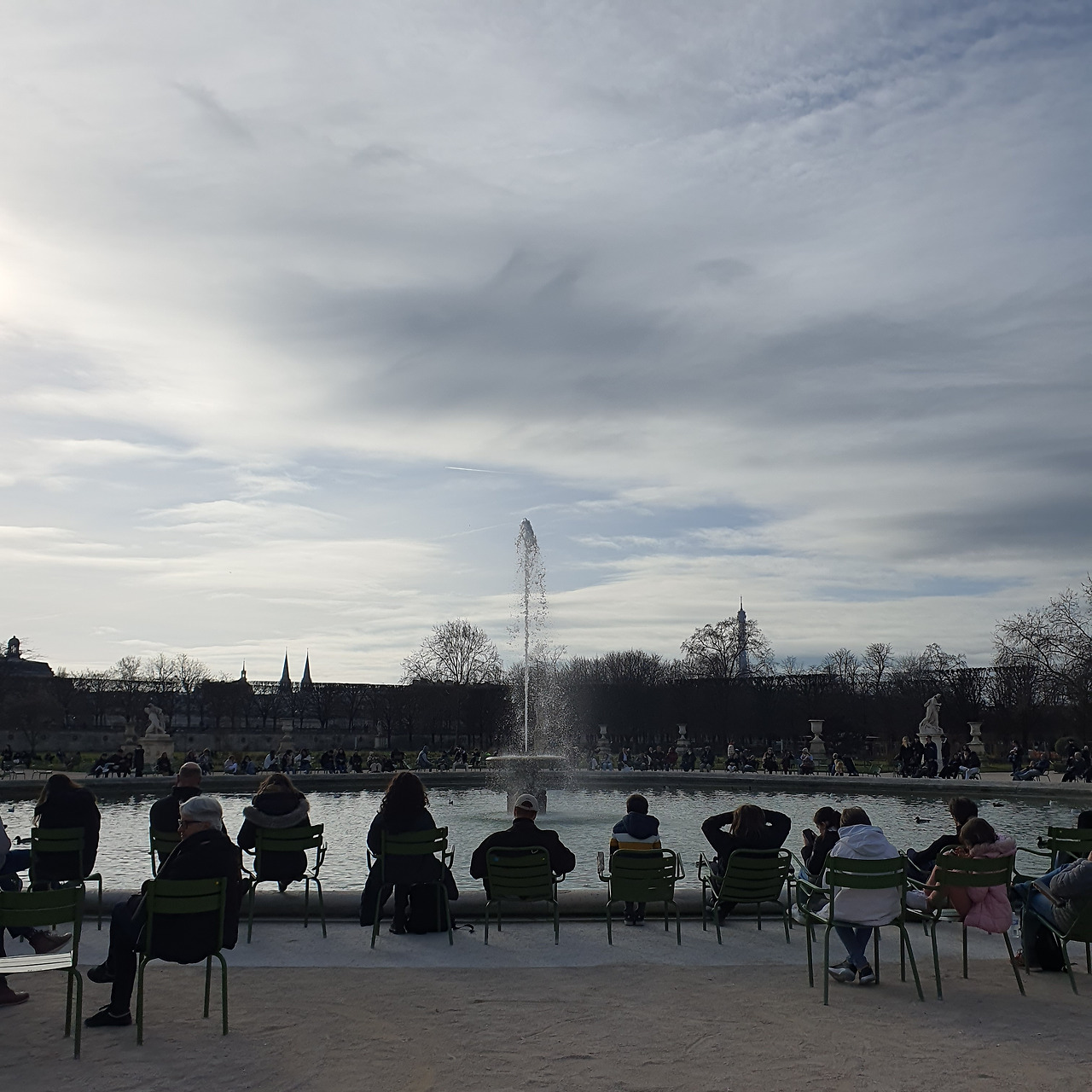 루브르 박물관을 스쳐 지나가고, 자연스럽게 뛸르히 정원(Jardin des Tuileries)으로 갔다. 아담한 크기지만 자세히 보면 조경에 신경을 많이 썼다. 물론 겨울에 갔으니 황량한 나뭇가지들을 보는 것으로 만족해야 했다. 그래도 시베리아 강추위가 고스란히 내려오는 한국에 비하면 아주 온화한 날씨였다. 낮에는 외투를 벗고 다닐 만큼 날씨가 괜찮았다. 분수대 근처에는 분수를 구경하는 사람들이 많았다. 그 모습이 조금 낯설면서 재미있었다. 꽤 오랫동안 앉아서 물멍을 하고 있는 사람들에게서 여유를 읽을 수 있었다.