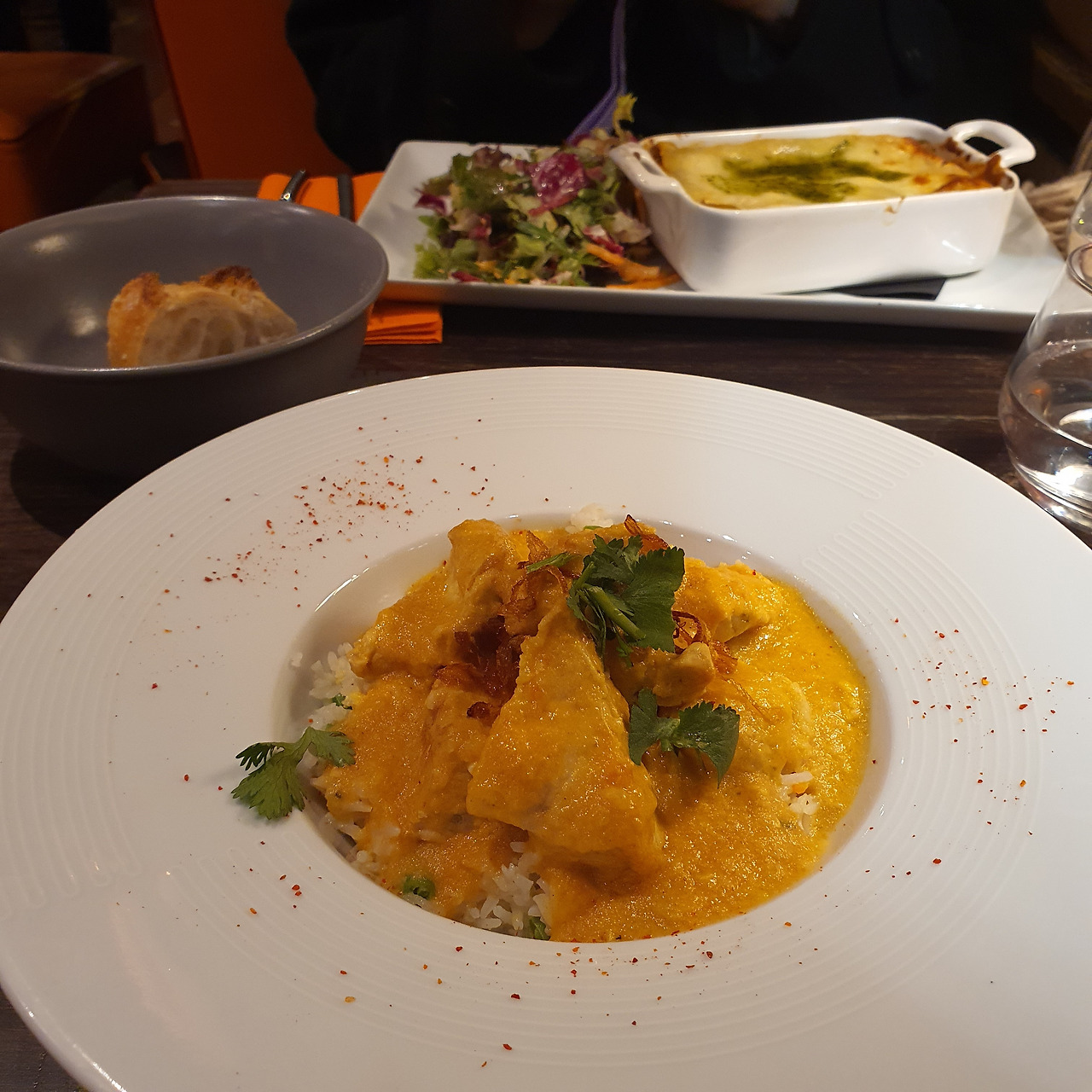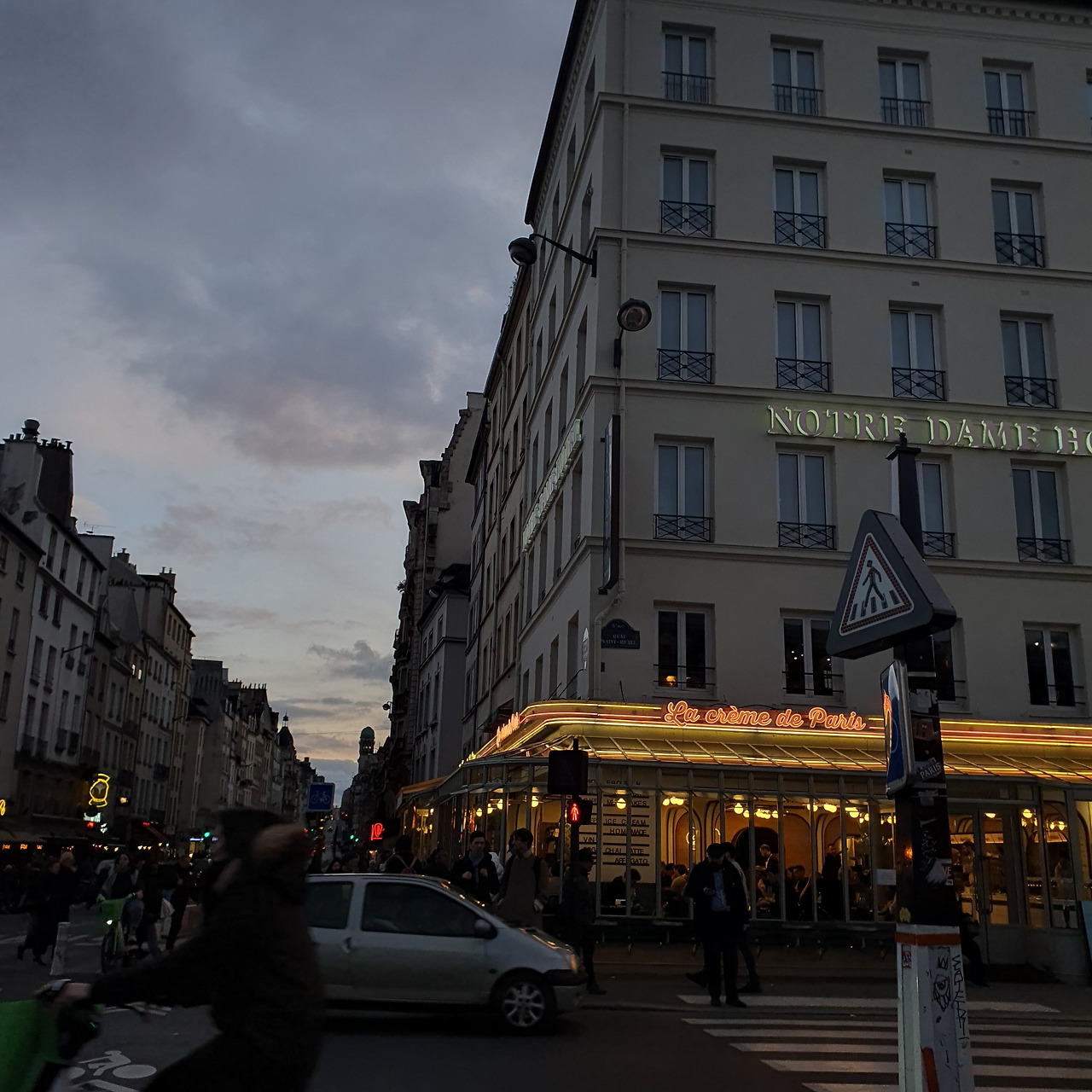 시간이 얼마 지나지 않은 것 같은 데 날이 어두워졌다. 힘들어서 세계 최초의 백화점 르 봉 마르셰(Le Bon Marché)를 못 간 것도 아쉽다. 근처에 현지인들에게 인기가 많다는 식당에서 저녁을 먹었다. 가게는 아담하고 편안해서 마치 프랑스 친구 집 식사에 초대를 받은 기분이었다. 오늘의 메뉴인 닭고기 카레(?)를 먹었는데 닭이 너무 뻑뻑해서 맛이 없었다. 친구의 비건 메뉴도 별로였던 거 같다. 내 속상한 마음을 읽었는지 이탈리아인으로 추정되는 주인은 연신 서비스로 주는 빵을 더 먹을 거냐고 상냥하게 물어보았다. 그래도 친절해서 봐준다. 파리의 레스토랑은 처음이었는데 이렇게 날리다니... 좀 속상했지만 파리는 언젠가 또 올 거고 다음에 갈 거 남겨둔다는 생각으로 하루를 마무리했다. 그리고 내가 가장 좋아하는 파리의 모습은 깜깜한 밤에 은은하게 녹아든 가게들의 네온사인이었다. 나중에 프랑스에 오래 살았던 지인에게 한국의 네온사인들은 요란하고 눈 아파서 싫었는데 프랑스 네온사인은 그렇지 않아서 좋았다고 했더니 프랑스 지인이 본인은 한국의 화려한 네온사인 분위기를 좋아한다고 했던 것이 기억난다. 그렇군.. 이렇게 사람의 취향은 다르다는 것을 다시 한번 깨닫는다.