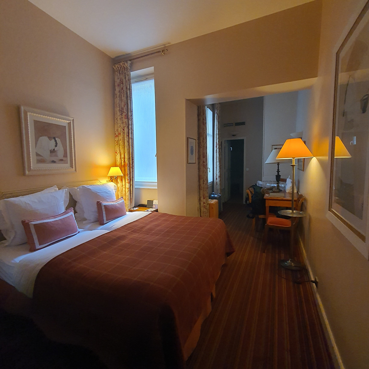 숙소(Relais Du Louvre Hotel)는 루브르 박물관 바로 옆에 있었다. 생각했던 것보다 아늑하고 멋졌다. 블루투스 스피커까지 구비되어 있어서 샹송을 들으며 짐정리를 했다. 방은 깨끗하고 따뜻했고, 온수도 잘 나왔다. 건식 화장실이 특히 마음에 들었는데, 욕조에 소금 입욕제까지 있어서 피로를 풀기 좋았다. 예술의 국가인 것을 인증하듯이 작은 방에는 벽마다 그림이 걸려있었다. 내가 바라던 프랑스의 모습이 그대로 눈앞에 펼쳐지고 있었다. 짐 정리와 방 구경을 마치고, 빵을 사러 주변 가게(Boulangerie BO&MIE Louvre-Rivoli)에 갔다. 보미 빵집!! 아는 언니 이름이라서 더 정겹다. 매장 안은 사람들이 꽤 북적거렸고, 치즈바스크와 샌드위치가 참 맛있었다. 특히, 커다랗고 촉촉한 치즈바스크는 아직까지도 그만한 걸 먹어보지 못했다.