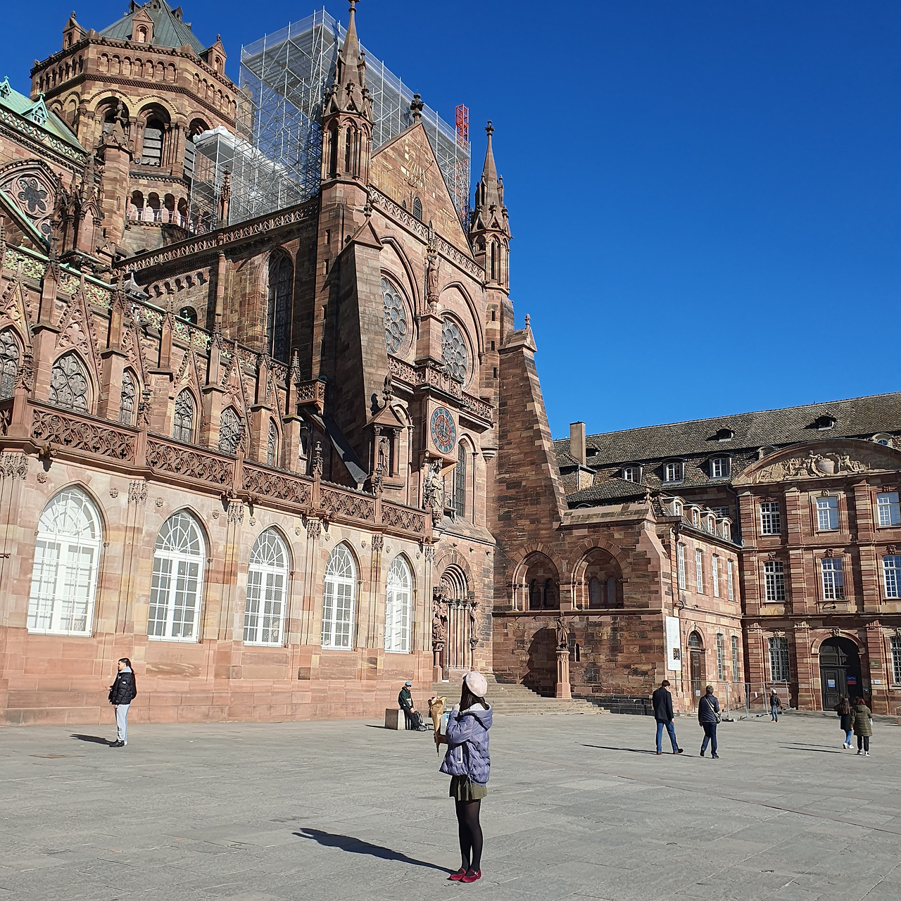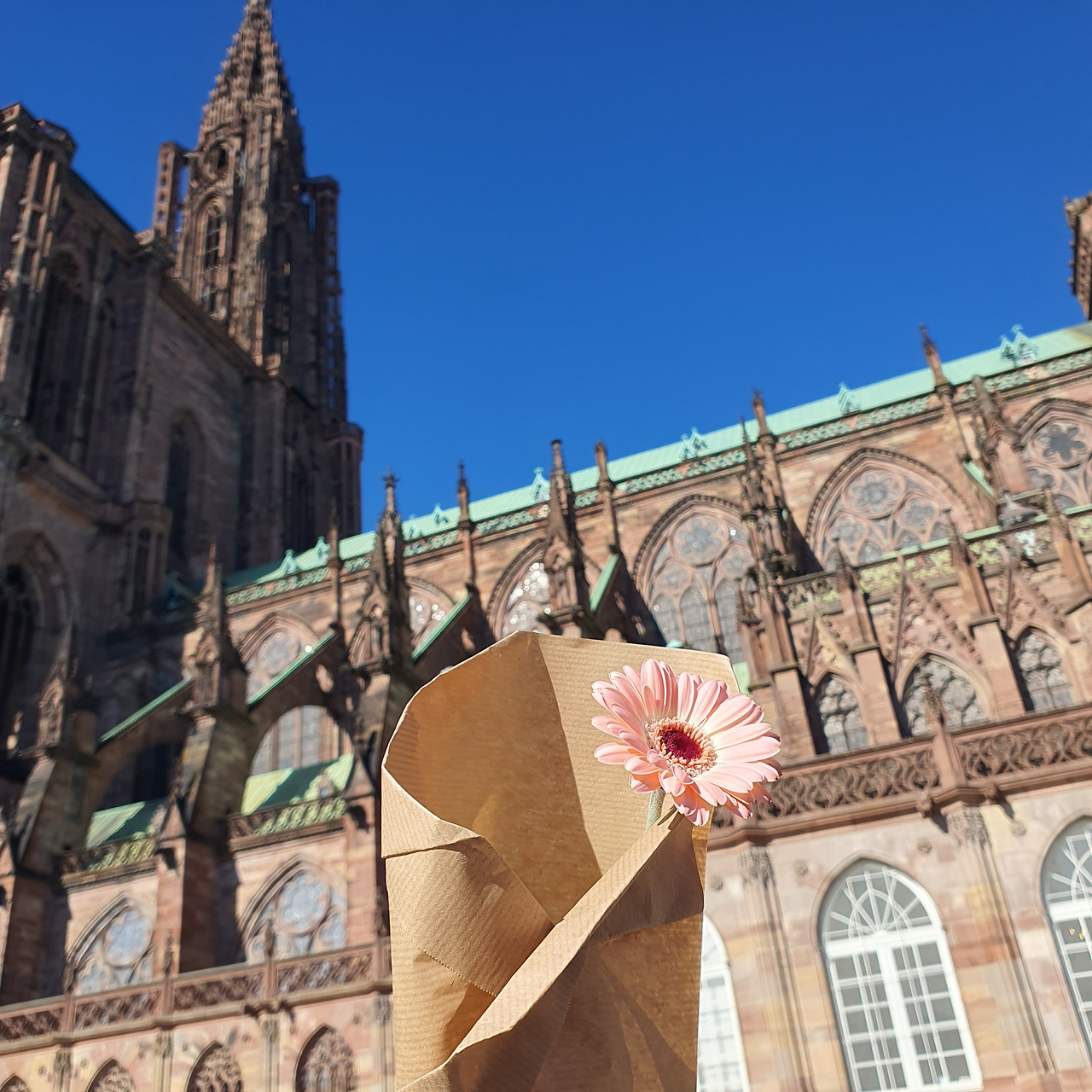 친구는 가다가 꽃집에 들러서 꽃 한 송이를 샀다. 처음에 왜 꽃을 사는지 이해가 안 됐는데 안 샀으면 꽤 아쉬울 뻔한 사진들을 건질 수 있었다. 보는 내내 예쁘기도 했고. 나중에 꽃은 우리에게 잘해주었던 호텔 직원에게 선물로 주었다. 11세기 초 세워진 스트라스부르 성당은 높이가 142m로 세계에서 가장 높은 성당이라고 한다. 쾰른 성당이 웅장하고 음산한 기운을 주었다면, 날이 좋아서 인지 스트라스부르 성당은 예쁘장하고 눈부셨다. 지금 보니 두 성당의 분위기에 날씨가 맞춰진 것 같다.