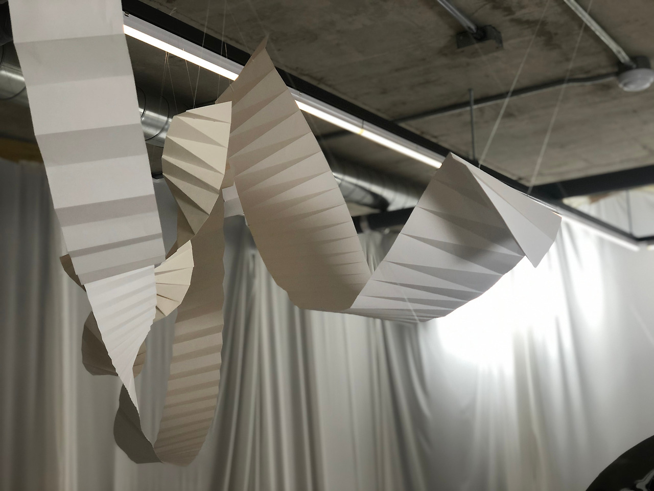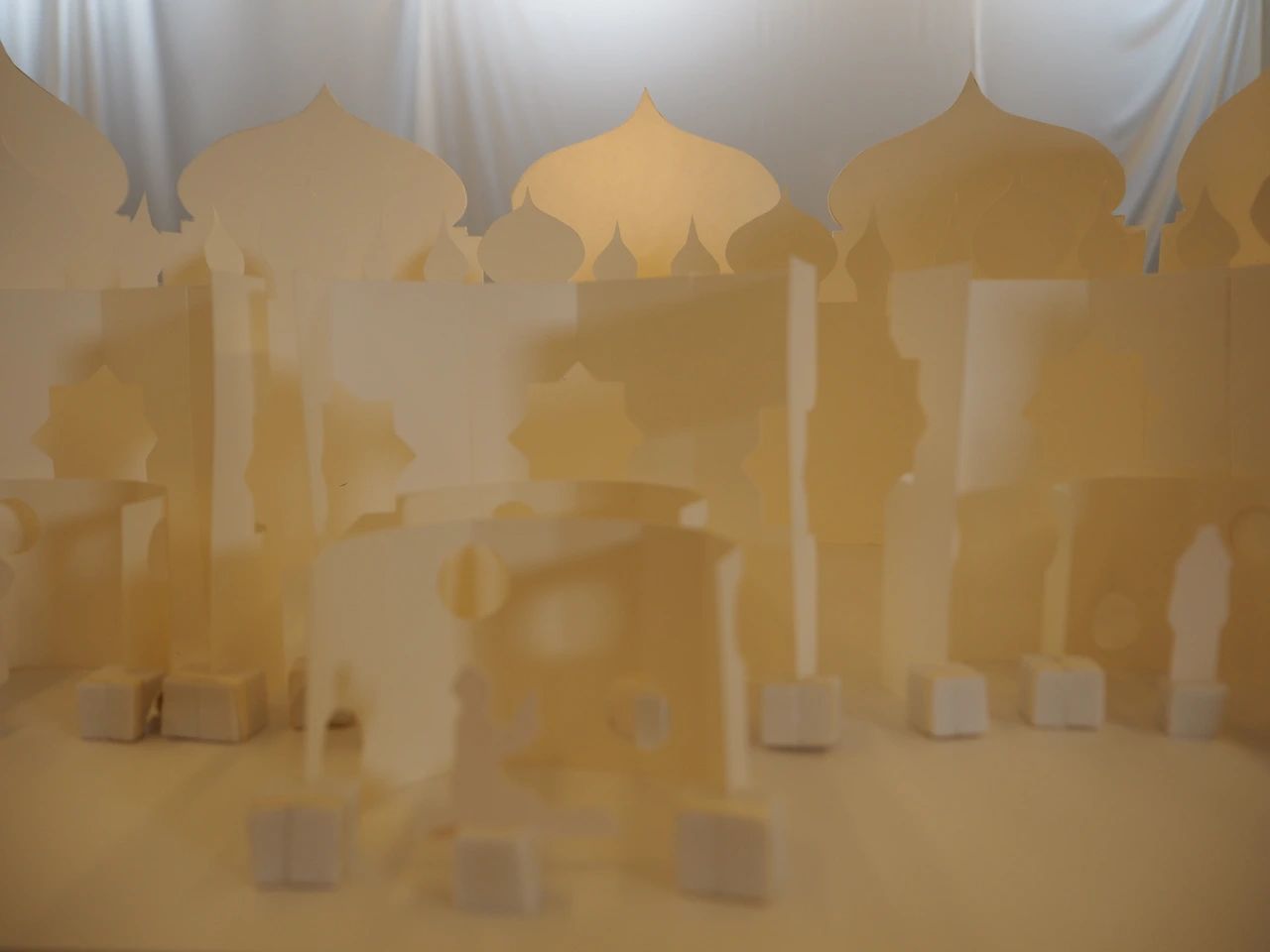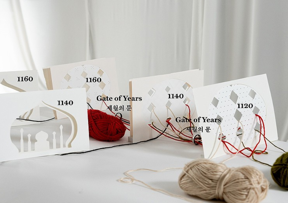각각의 종이는 라니야(Tale3)와 핫산(Tale1)을 의미합니다. 라니야는 핫산의 아내로 중년의 라니야와 노년의 라니야는 합심하여 과거로 돌아가 위기에 빠진 젊은 핫산을 구합니다. 라니야가 시간여행을 하며 핫산의 삶에 영향을 미치며 서로 복잡하게 얽혀있었던 것처럼 구조물도 복잡하게 얽혀있도록 설계했습니다. 여기서는 넓었던 종이의 간격이 점차 좁아지는 방식을 이용하여 시간의 유속 변화를 표현했습니다.