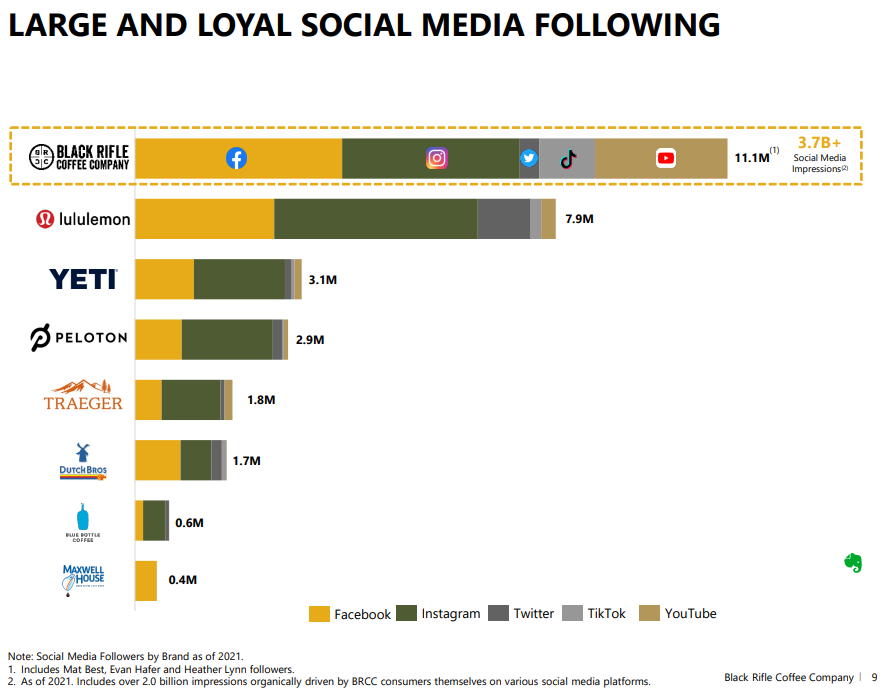 그 결과 BRCC는 주요 브랜드들과 비교했을 때도 부럽지 않은 성과를 만들어 냈다. 2021년 기준 BRCC의 발표에 따르면, BRCC와 BRCC 관계자(Mat Best, Evan Hafer, Heather Lynn)의 주요 SNS 팔로워 수를 모두 합하면 1,110만이다. 이는 두터운 마니아층을 보유한 것으로 알려진 룰루레몬(790만)보다도 많다. 동종 업계와 비교하면 그 차이가 더 크다. 커피계의 애플이라 불리는 블루보틀(60만)이나 100년이 넘는 역사를 자랑하는 미국의 커피 브랜드 맥스웰하우스(40만)와 비교했을 때 BRCC 커뮤니티의 파괴력이 어느정도인지 짐작해볼 수 있다.