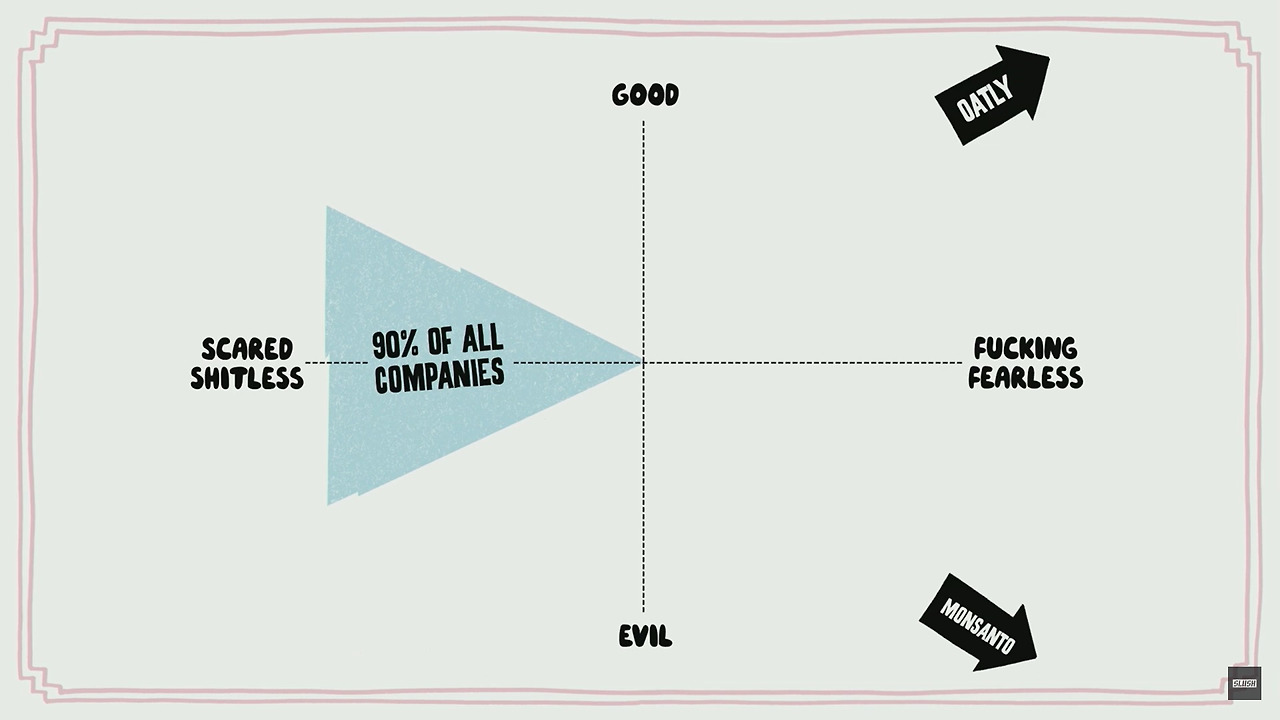 대다수의 회사들은 싸움에서 질 것을 두려워한다. 하지만 오틀리는 거대 유업계가 크고 기득권을 가졌다고 해서 진실을 말하는 것을 막으려 해서는 안된다며 '졸라 겁대가리 없이(Fucking Fearles)' 정면 승부하기로 했다. 세상에는 몬산토 같은 졸라 겁대가리 없으면서 악한 회사도 있지만, 오틀리는 졸라 겁대가리 없으면서도 선하기 때문이다.