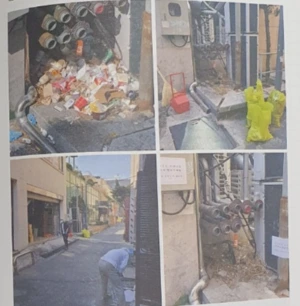건물과 건물 사이 쓰레기가 한번 쌓이다 보니 계속 사람들이 그곳에 쓰레기를 투척하여 작은 쓰레기 동산이 생겨났다.