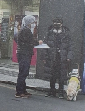 알고 보니 시각장애가 있으신 고객님께서 안내견까지 있어 빵집에 가서 구매를 못하고 계셨던 거 같습니다.