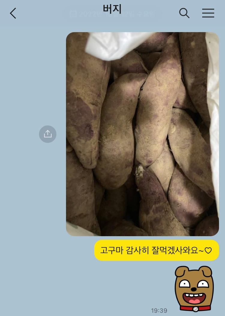 그도 그럴 것이 아빠의 고구마 선물은 8년간 자취한 딸에게 보낸 첫 택배이기도 했고, 지난 몇 년간 암과 사투를 벌이며 누구보다도 삶의 의지를 보여준 한 가장이 딸에게 보내는 쑥스런 사랑의 표현이기도 했다. 동네 마트에서 파는 한 손에 쏙 들어오는 고구마 따위와는 비교조차 되지 않았다.