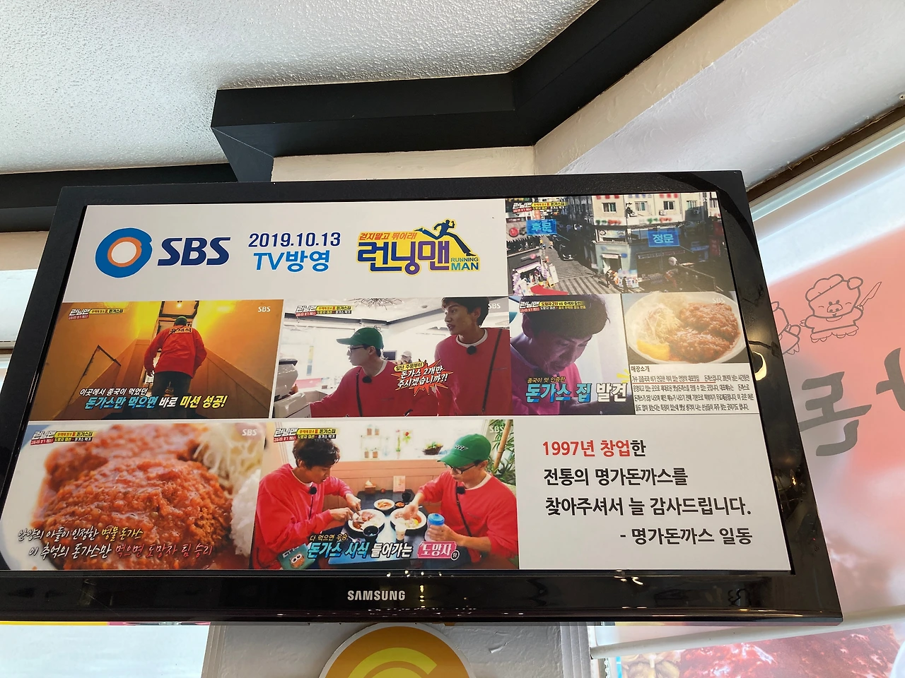 먹다 보니 TV모니터에 런닝맨 촬영지라는 사실을 확실하게 홍보하고 계셨다. 1997년이면 꽤 오래된 맛집임을 알 수 있었다.