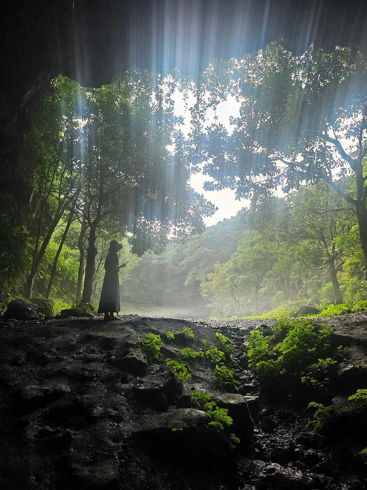 울창하게 엉긴 나무 사이를, 깜깜한 어둠의 틈새를 기어이 비집고 들어오는 빛줄기다.
