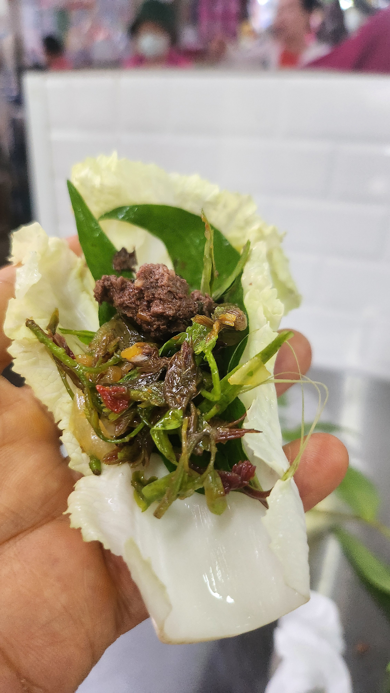 시장 입구부터 열대과일이며 알 수 없는 야채들을 파는 노점상들이 즐비했고 시장 안으로 들어가자 우리나라 광장시장 느낌의 다양한 먹거리로 가득한 소규모의 음식점과 각종 야채, 반찬을 파는 노점상들이 즐비했다.