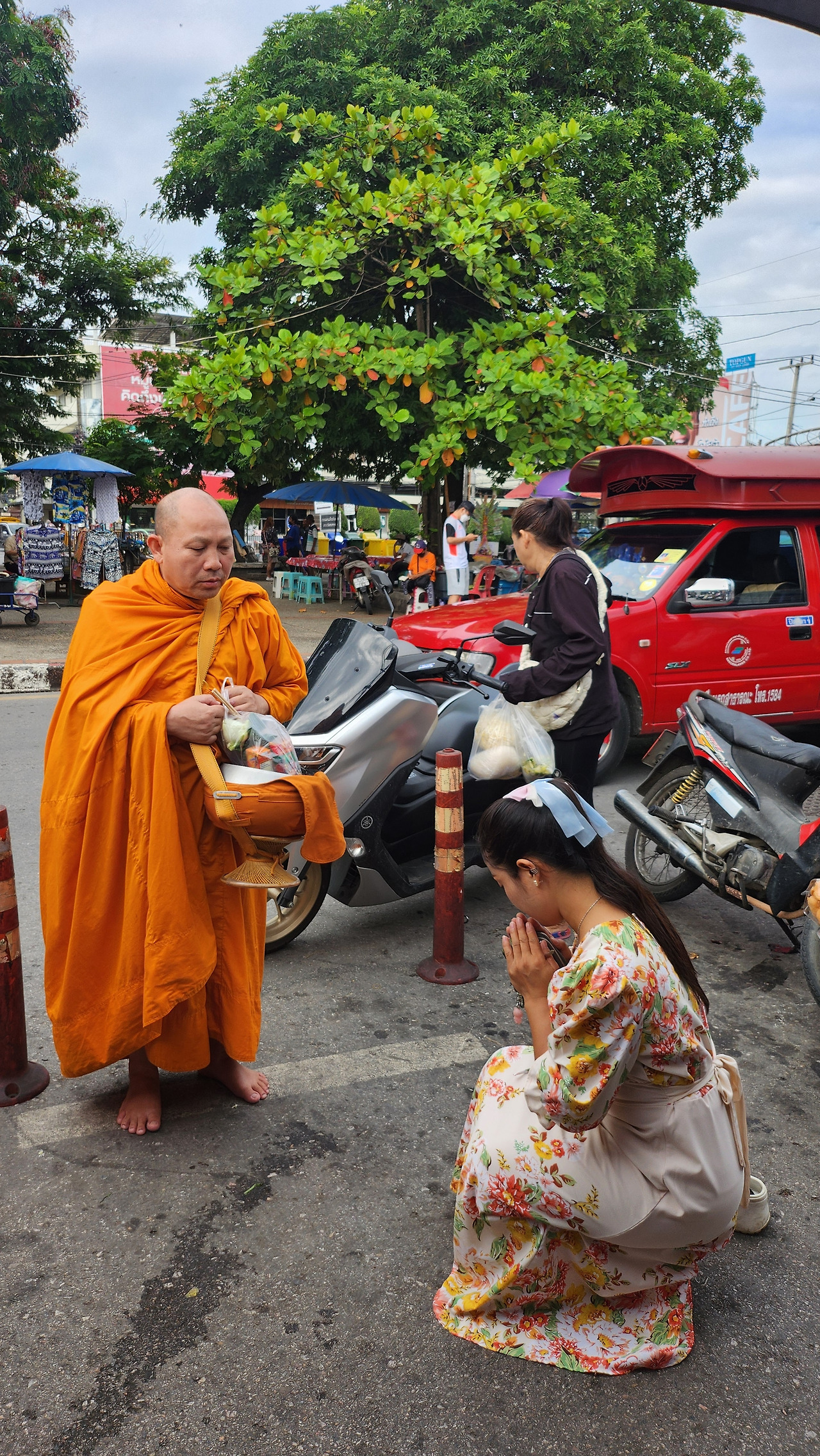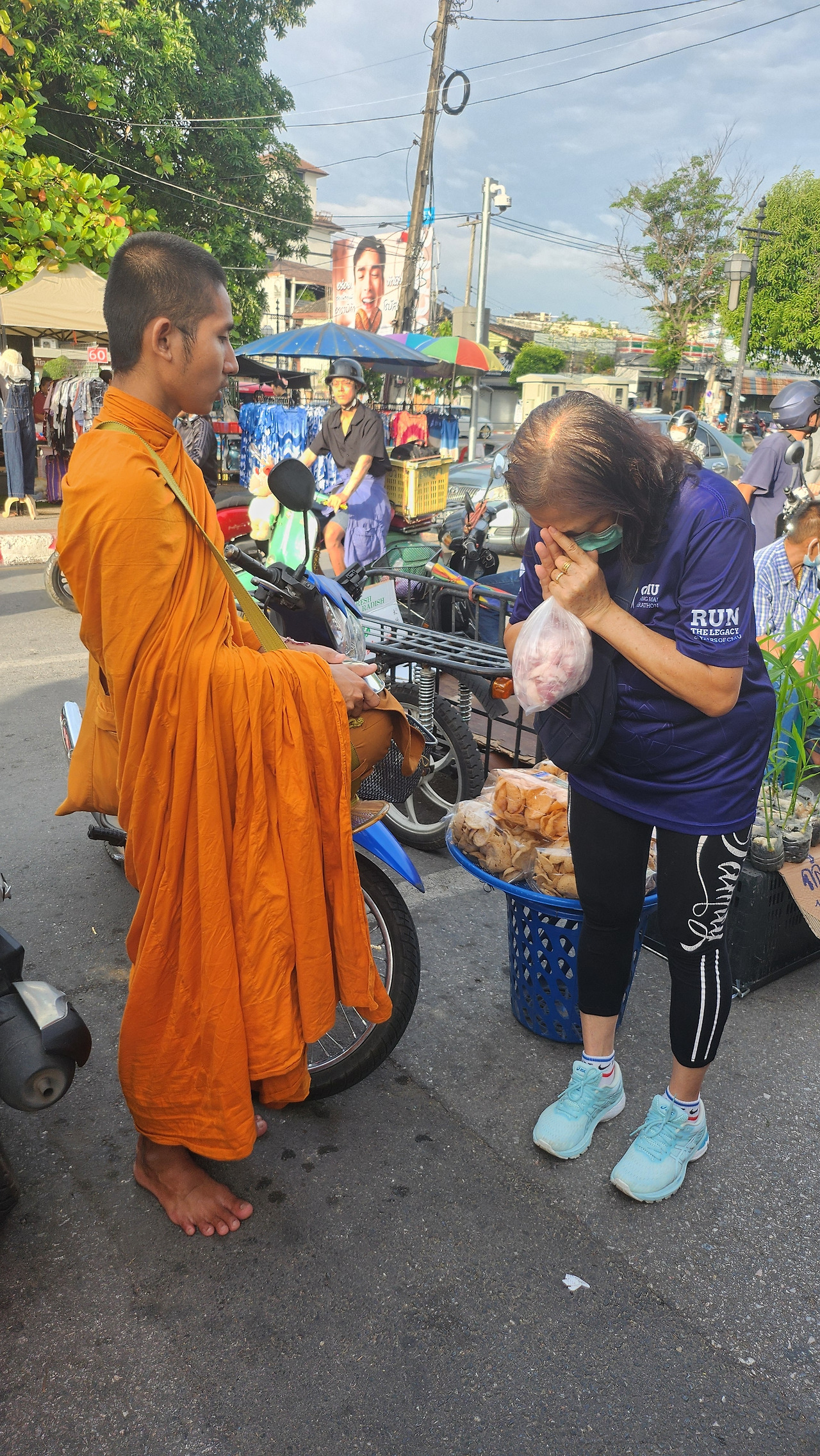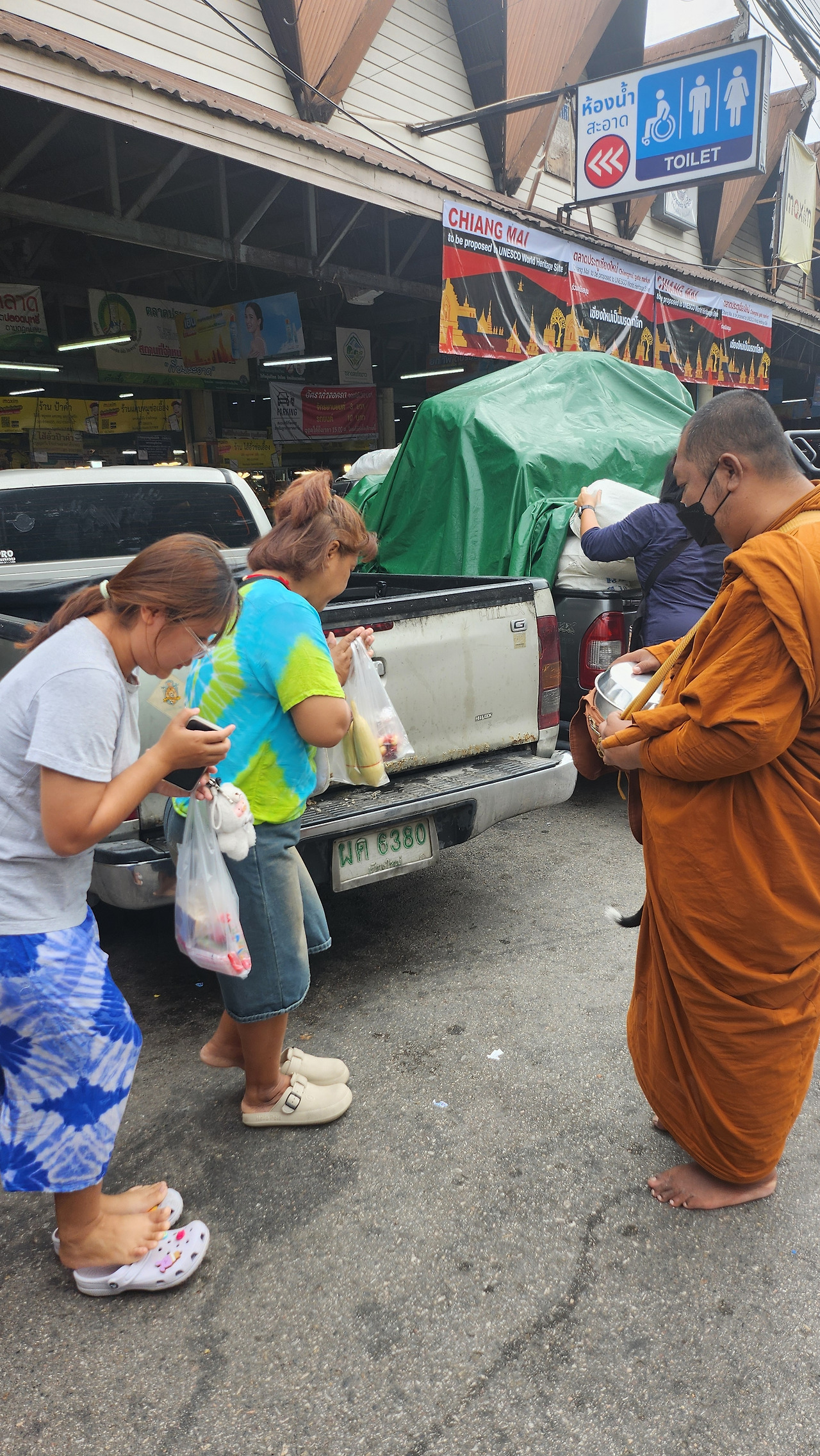 새벽 시장에서 마주친 탁발과 공양의 모습이었다.
