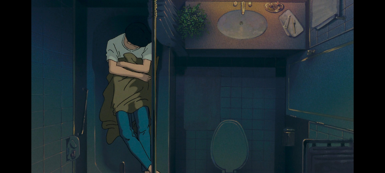 즉흥적인 도쿄행, 침대에서 잠든 여주인공과 화장실에서 잠드는 남주인공