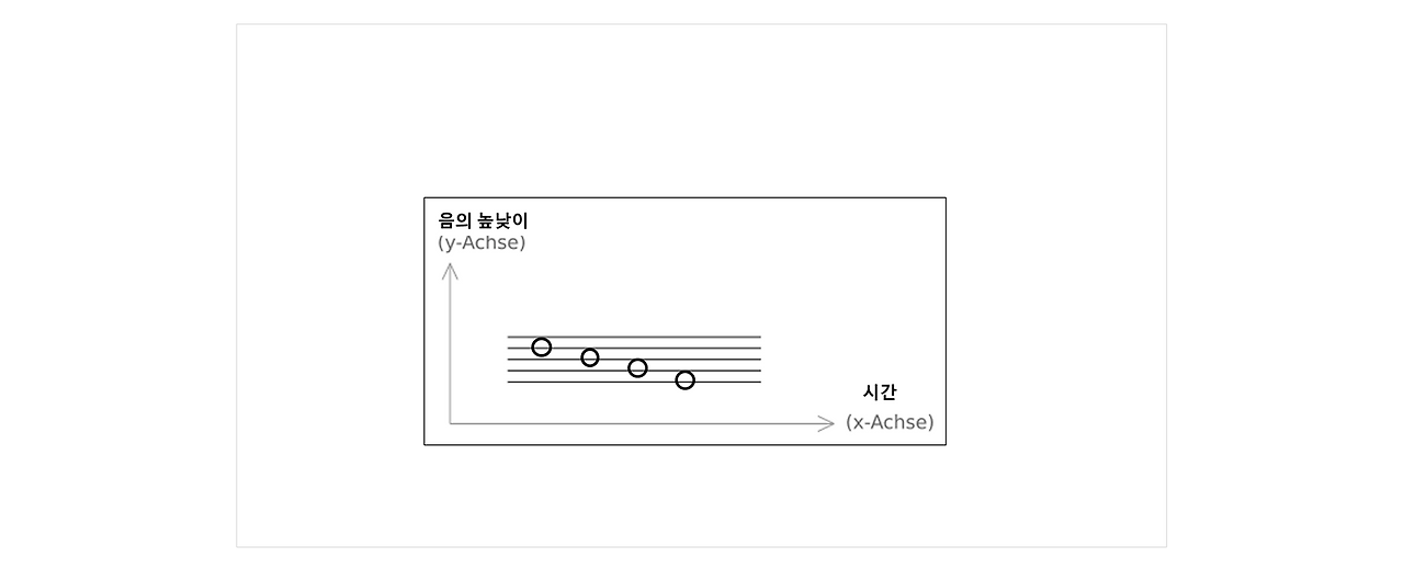 이렇게 긴 역사를 가진 악보, 오늘날 우리가 악보를 자세히 들여다보면 알 수 있는 것들이 있습니다. 우리가 마치 글씨를 왼쪽에서 오른쪽으로 읽어가듯이, 악보 위의 음들은 왼쪽에서 오른쪽으로 진행되어지고, 이런 동그라미들이 올라가면 음이 높아지고, 내려가면 낮아진다는 사실이죠.