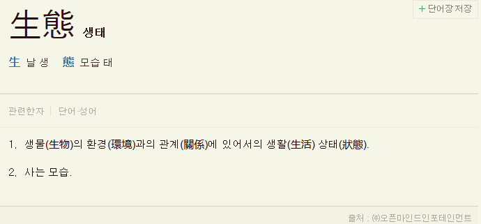언젠가부터 생태라는 단어가 많이 쓰이기 시작했고, 환경이라는 단어와 함께 쓰이기도 한 것 같다만