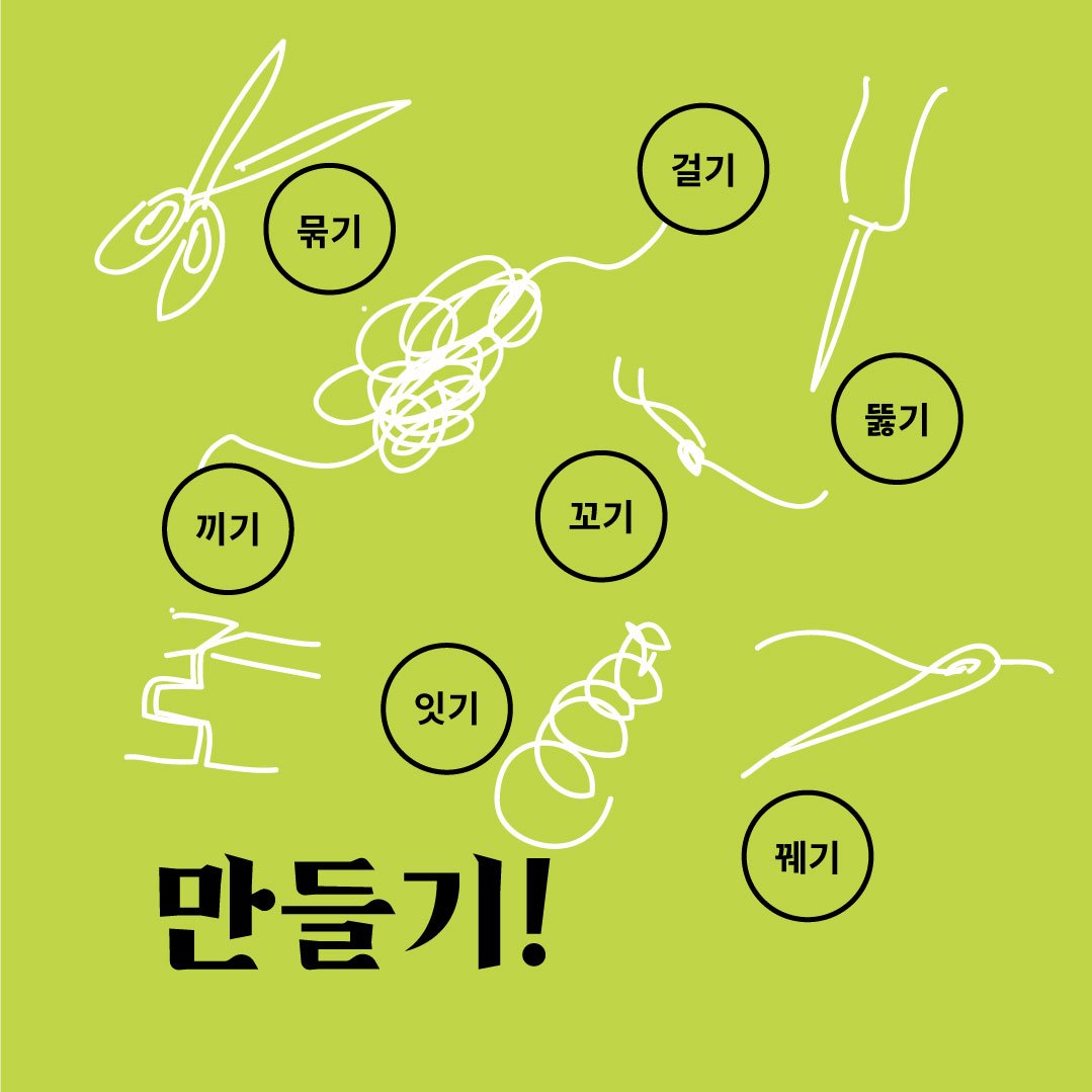 4. 접합을 위한 도구는 내가 굳이 새것을 사지 않아도 이미 내 주변에 많이 있다. 심지어 실, 철사 같은 것도 누군가가 안 쓰는 것들이나 버려질뻔한 것을 모아 받은 것들이 많다. 가위, 칼, 송곳, 바늘과 같은 도구는 한 번 구비해 놓으면 계속 쓰는 것들이다.