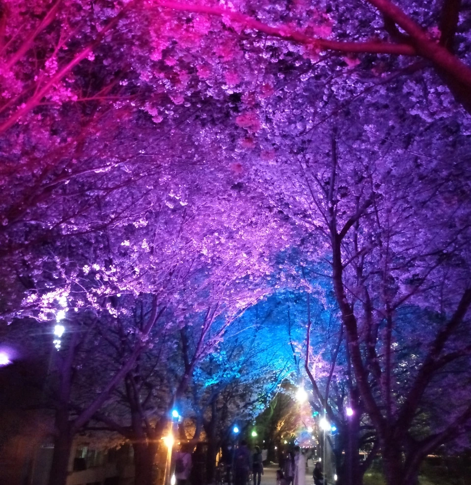 벚꽃이 핀 밤에는 조명으로 인해 눈도 호강하며 걸을수 있다.