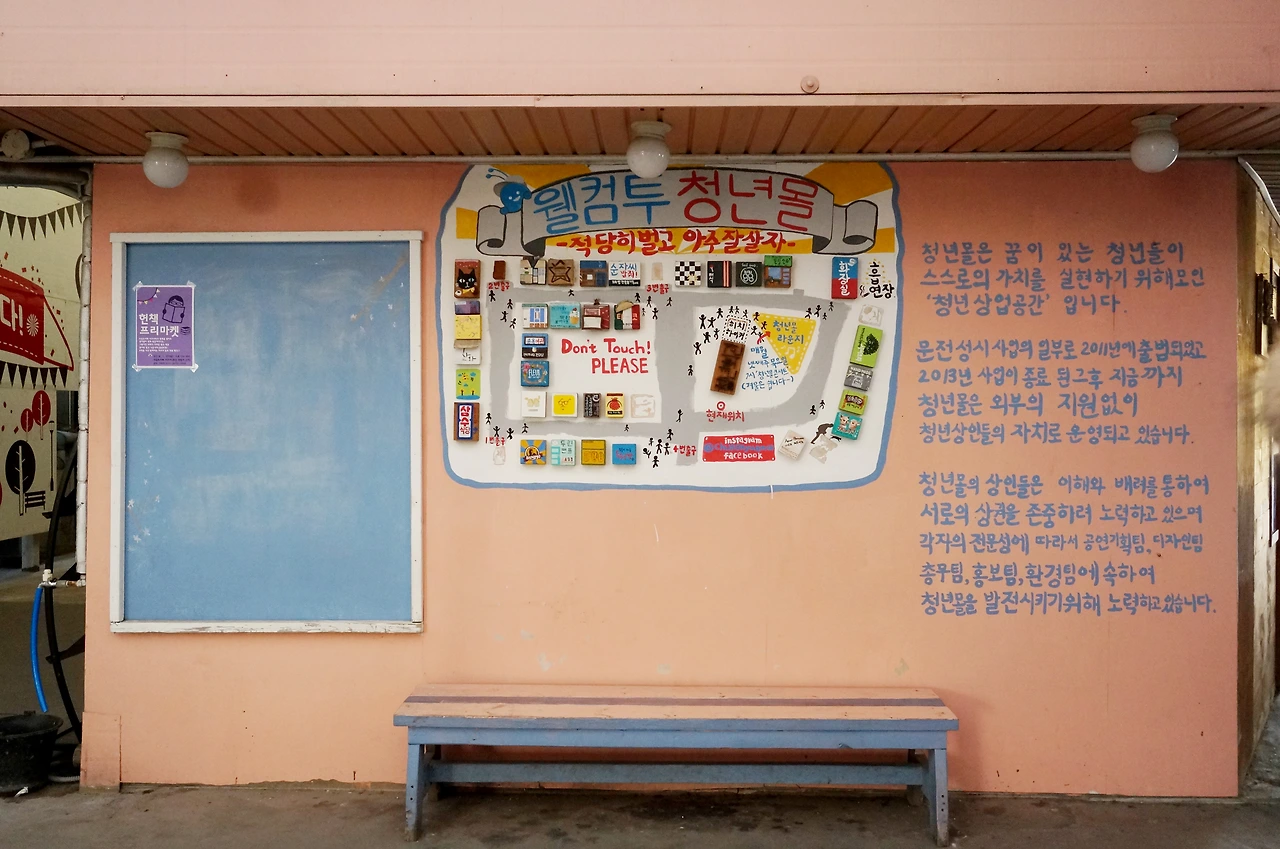 밥을 먹고 나와 호스트분이 2층 청년몰을 가보는 것도 괜찮을 것이라는 말에 2층으로 향했다. 젊은 아티스트들이 만들어 낸 공간으로 감각 있는 아이템들을 판매하는 곳이었다.