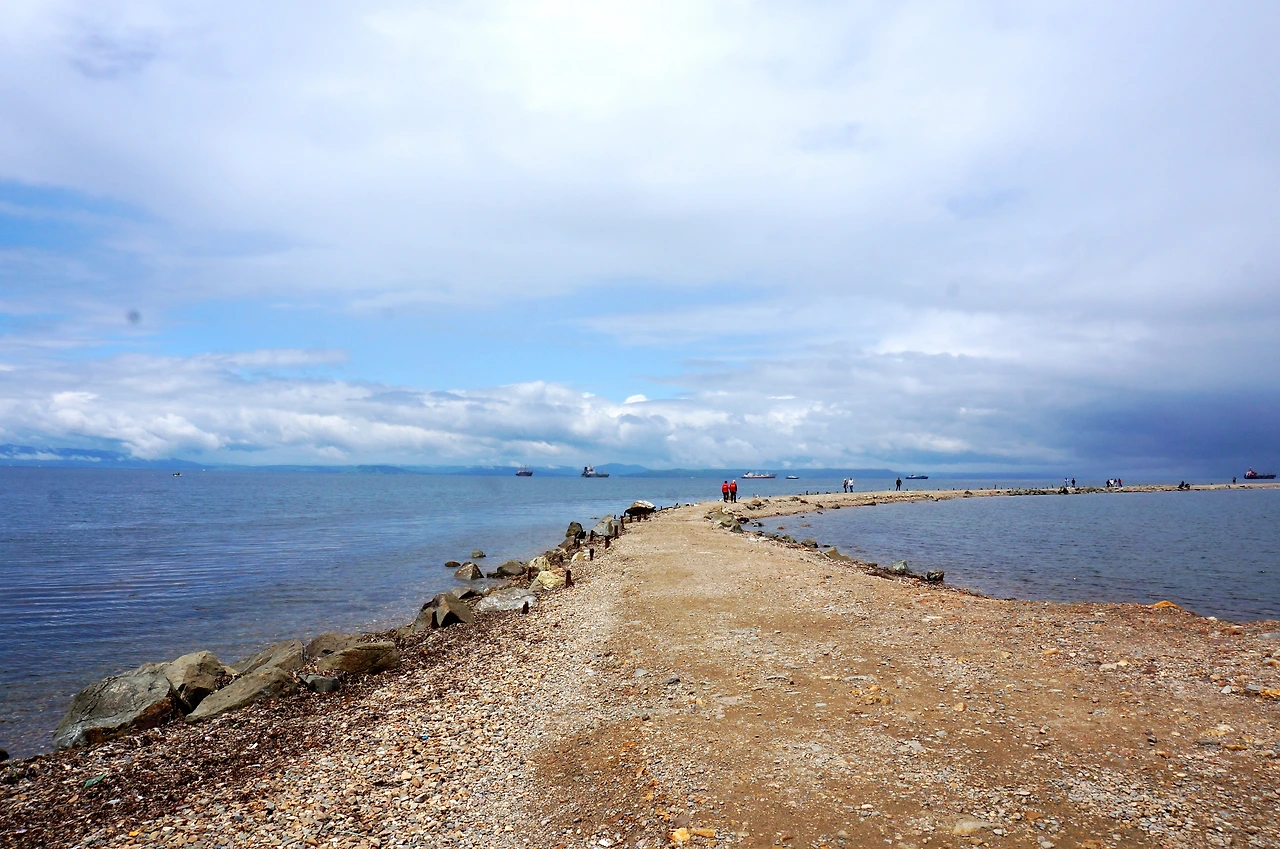 아침에는 해가 쨍쨍해서 비가 안 올 거라 생각하고 우산도 안 챙겨 왔는데 택시에서 내리자마자 날씨가 흐려지기 시작했다. 시간이 일러서 그런 건지 날씨가 그다지 좋지 않아서 그런 건지 사람은 별로 없었고 운이 나쁘면 바닷길이 열리지 않는다고 했는데 다행스럽게도 1미터도 안 되는 작은 폭의 길이 열렸다. 날이 맑았으면 참 좋았을 텐데.. 구름이 뭉게뭉게 져 비가 갑자기 내릴 것 같기도 했지만 탁 트인 하늘을 보니 오길 잘했다는 생각이 들었다.