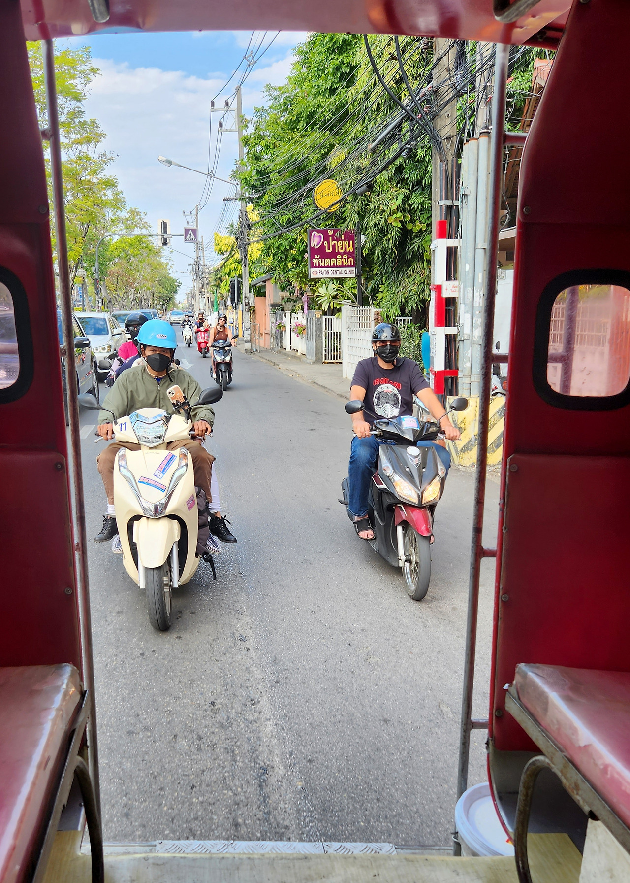 십여 년 전 방콕을 처음 방문했을 때가 생각난다. 수완나품공항에 도착했을 때 처음 맡는 동남아만의 향기와 분위기에 행복했던 마음도 잠시 시내로 가는 택시기사의 얕은 수로 나와 내 친구의 흥은 깨지고 말았다. 미터 계산을 확인하고 탔고 중간중간 미터기의 금액이 올라가는 것도 확인했는데 시내에 다다를 즈음 미터기를 꺼버린 것이다. 그리고 말도 안 되는 금액을 요구한 택시 기사와 실랑이를 벌였고 경찰서에 가자는 말로 모든 말들은 정리될 수 있었다. 처음의 기억이 참으로 중요하다고 느끼는 게 이때의 경험으로 태국은 나에게 자칫하면 흥정이 필요한 나라였다. 그런 기억을 갖고 다시 태국을 왔을 때 작은 긴장감이 감돌았다. 하지만 오랜만에 온 방콕은 교통편이 너무나 편리하게 변해있었다. 특히 지하철은 한국과 다를 것 없이 깨끗하고 배차 간격도 길지 않아 이동하기에 너무 편리했다. 하지만 치앙마이는 그렇지 못했다. 코로나로 인해 버스 운행이 중단되어 사용할 수 있는 교통편이라고는 내가 아는 범위에서는 난이도 최하인 그랩/볼트/인드라이브를 통한 자동차, 빨간 자동차로 불리는 썽태우(다른 노선은 노란색, 검은색등 노선에 따라 컬러가 다르다.) 뚝뚝 그리고 대중적인 수단인 오토바이 정도였다.
