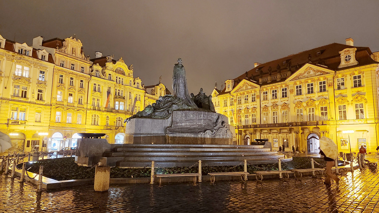 좌) 구시가지 광장 | 천문 시계 | 우) 얀 후스의 동상