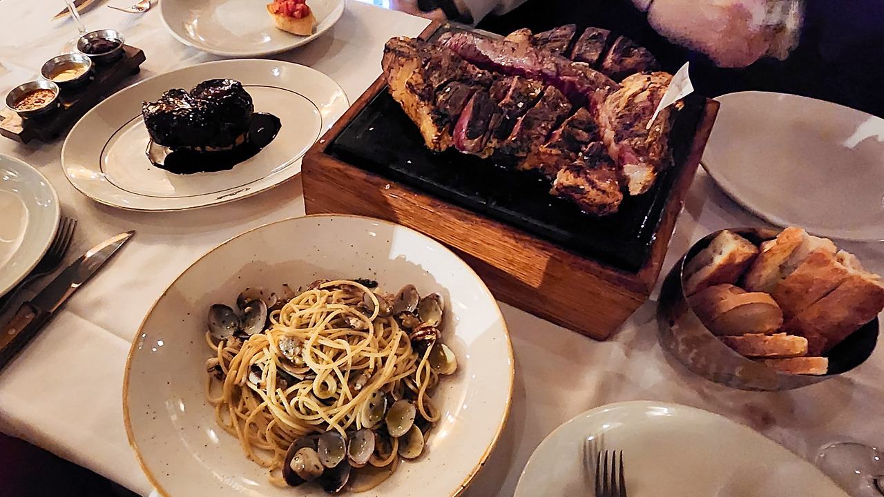 다들 오랜만에 여러 음식을 셰어 해서 먹어볼 수 있다는 기쁨에 나를 포함해서 모두 신나 보였다. 애피타이저를 시작으로 유명한 대왕 티본, 가장 맛있었던 발사믹 스테이크, 양이 엄청 많았던 봉골레 파스타, 추천받은 레드와인 한 병을 시켰다. 양이 생각보다 많아 다 먹지 못하고 남겼는데 홀을 돌고 계시던 매니저님이 우리 테이블로 오시며 물으셨다. "저희 셰프님이 지나가다 보셨는데 봉골레 파스타를 잘 안 드시는 것 같다며 혹시 맛이 별로인 건지 이유를 알고 싶다고 여쭤봐 달라고 하셨어요." 단지 양이 많아서 그런 것뿐인데 넘기지 않고 고객의 피드백을 궁금해하는 셰프의 자부심이 느껴져 이번 한 끼가 더욱 맛있고 기억에 남는 그런 식사가 될 수 있었다.
