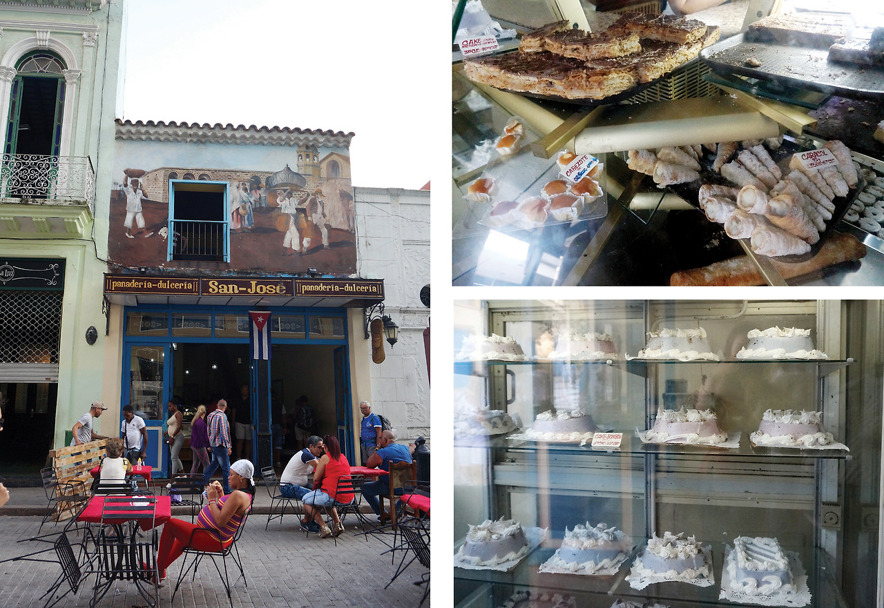 볼거리도 먹거리까지 많은 Obispo 거리를 걷다가 손님이 유난히 많은 빵집을 보게 되었다. 배가 고프진 않았지만 휴식이 필요했고 어디든 사람이 많은 곳은 이유가 있다고 믿는 나이기에 그들의 맨 뒷줄에 서 본다. 먹음직해 보이는 제과들이 가격까지 저렴하니 빵순이인 나로서는 그냥 지나 칠 수 없는 곳이었다. 스페니쉬로 적힌 제목들을 외우지 못해 스텝을 끌고 가 아이처럼 손가락으로 이것저것을 가리키고 웃음으로 마무리한다.