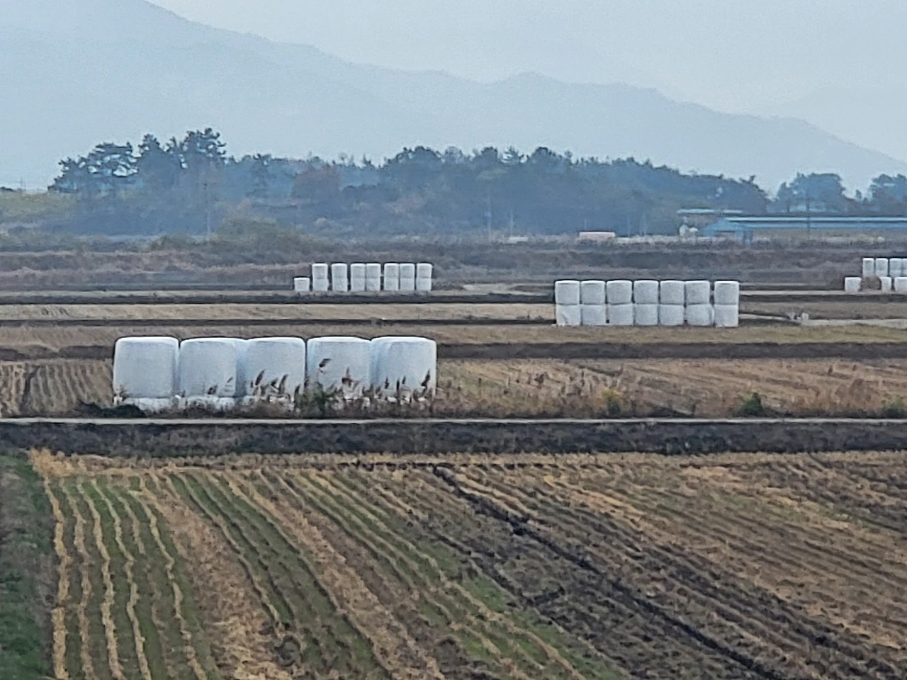 를 타고 가자면 저 멀리 들판에 하얀 둥그런 원통형 더미를 보게 된다.