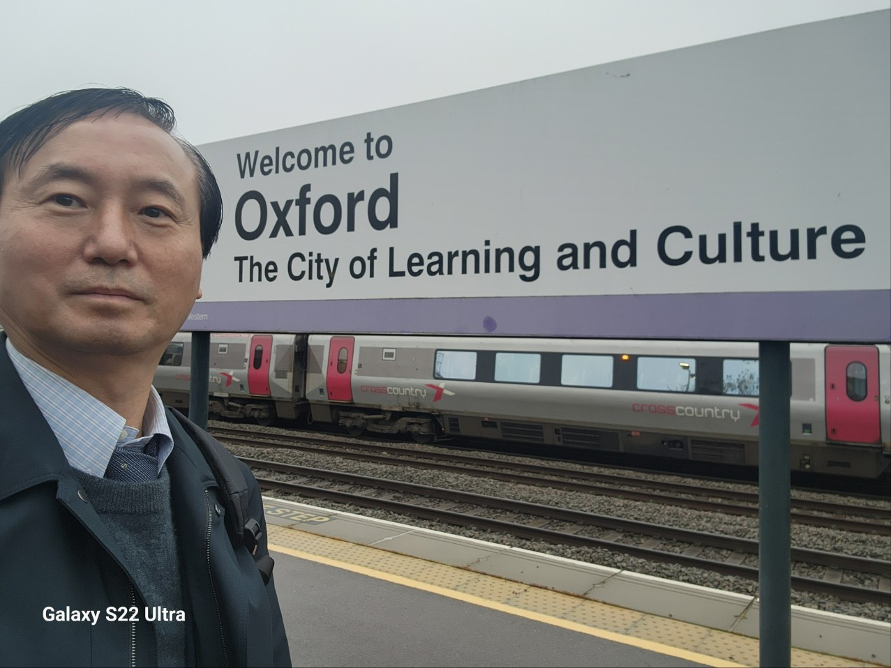 옥스퍼드역에서 배움과 문화의 도시라는 표지판 앞에서 찍은 저자 사진. 2024.12.28.