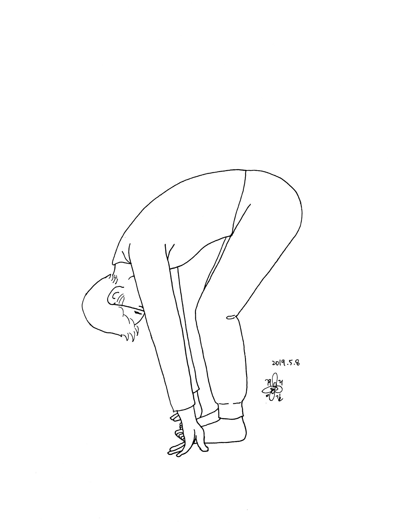 그 이후 저는 집에서 다리 뒤쪽을 늘이는 동작을 자주 합니다. 서서 무릎을 쭉 펴고 몸을 숙여 양손으로 발 옆을 짚으면 되는데 전 안됩니다. 그래서 원래는 무릎을 쫙 펴야 되는데 뒤가 당겨서 우스운 모양이 나오지만 그래도 시원합니다. 종아리와 허벅지 뒤가 조금씩 늘어나는 게 느껴집니다.