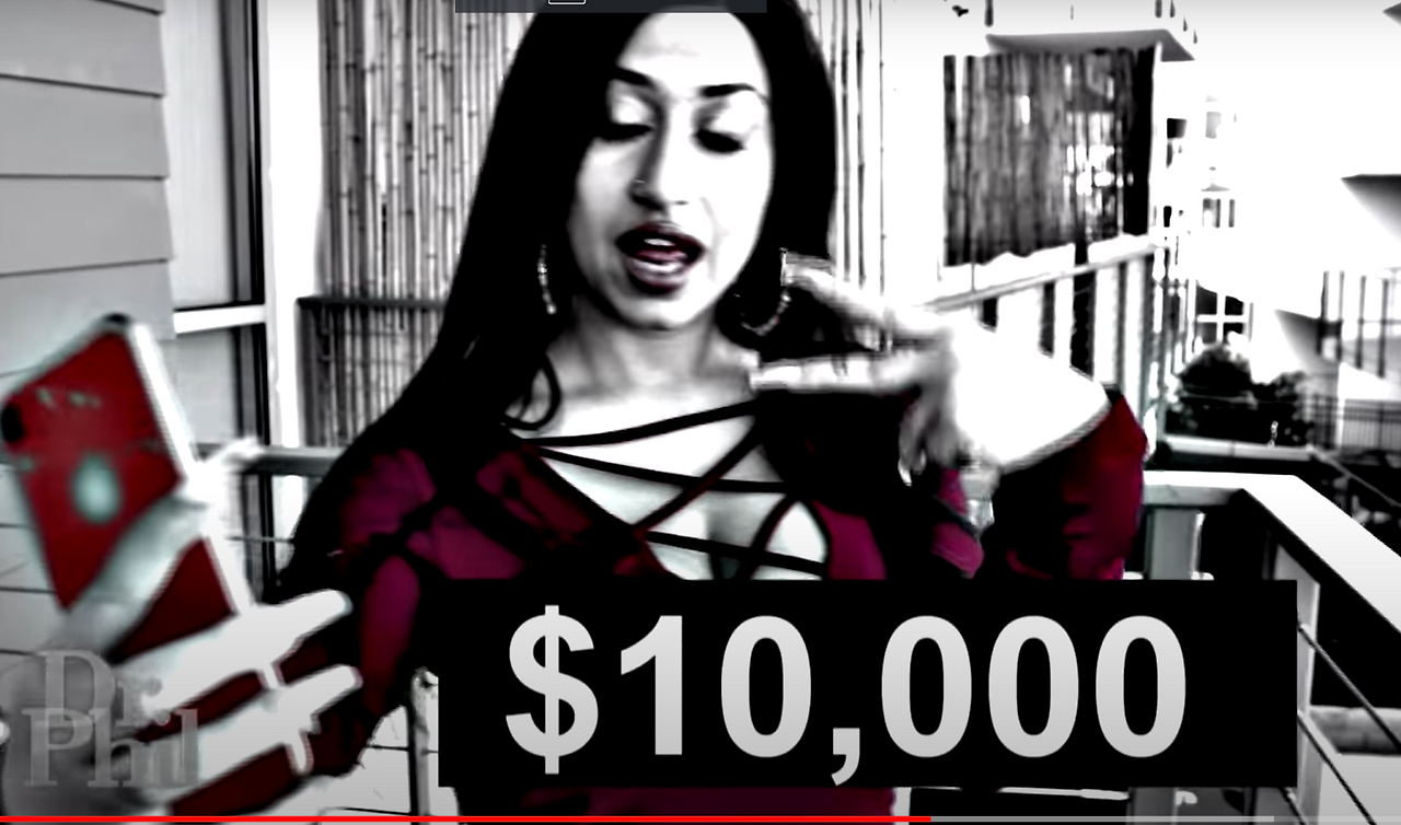 그리하여 그녀는 멍청하고( dumb), 때로는 선정적이며 심지어 인종 차별적인 내용으로 사람들의 시선을 끌어들이려 노력한다. 자신의 유튜브 채널에 사람들을 끌어들이기 위해서는 어떠한 것도 마다하지 않는다. 마침내 그녀는 남의 호주머니나 핸드백에서 지갑을 훔쳐 달아나는 비디오를 만들어 사람들을 당혹하게 하고, 위험 부담까지 감수해가며 프랭크 쇼(Prank show, 몰래카메라 쇼)를 만들기도 했다.