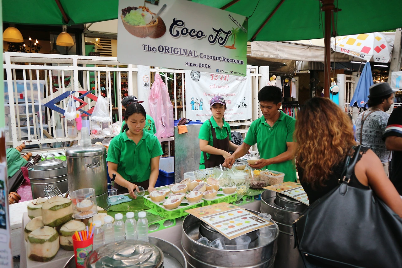 쇼핑을 하다 허기진 배를 채울 수 있는 맛집도 많아요. 국수를 파는 포장마차도 있고요, 코코넛 아이스크림이나 망고를 파는 곳도 많아요. 그런데 여자 친구 분이 깔끔한 곳을 좋아한다고 했으니, 야외에서 로컬 푸드를 먹는 것만큼은 피하는 게 좋겠네요. 깔끔한 레스토랑을 찾는다면 TOH PLUE antique라는 곳을 추천할게요. 주문을 할 때 고객의 나라를 묻고선, 음식에 그 나라의 국기를 꽂아서 내어주거든요. 독특한 재미가 있죠. 맛도 좋아요. 팟타이를 좋아한다면 JJ ZAAP라는 식당에 가 봐요. 아마도 여자 친구 분이 좋아하지 않을 만한(?) 현지 느낌의 식당이긴 한데, 위생상태 같은 건 걱정하지 않아도 좋을 것 같아요. 그곳에서 음식을 먹고 특별히 탈이 났다는 사람은 아직 본 적이 없거든요.