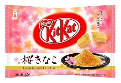 실제로 가장 만족도가 높은 벚꽃 에디션 상품이 아닐까 생각한다. 초코바를 그리 좋아하지 않는 나조차 키켓이란 초코바의 중독성에 빠져든 적이 있었는데, 그중에서도 이 벚꽃+콩 맛 킷캣은 정말로 맛이 좋다. 기존 인절미 과자 맛이 대부분이지만, 기분 탓인지 몰라도 벚꽃 향이 분명 나는 것 같다. 이 제품 역시 우리나라에선 구할 수 없어 일본 관광 시 필수 구매 목록에 들어가는 상품이다. 편의점 어딜 가나 구매할 수 있으니 한 번쯤 먹어보는 것도 좋을 듯.