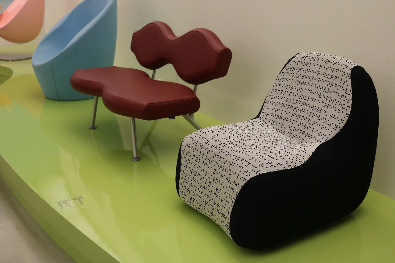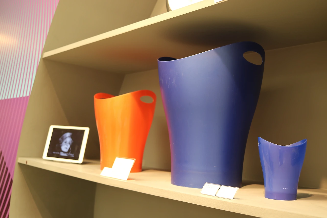 전시 후반부에는 플라스틱의 시인이라고도 불리는 카림 라시드의 대표적인 산업 디자인 제품들이 선보입니다. 오우 의자는 특히 재미있는 사연으로 머릿속에 각인되었는데요. 이 작품을 설명하기 위해선 1994년으로 거슬러 올라가야 합니다. 당시 그가 디자인한 가르보 쓰레기통이 미국 내에서만 수백만 개가 팔려나갔습니다. 이는 미국인들이 저렴한 가격의 디자인을 원한다는 것을 증명하는 것이었죠. 가르보의 성공과 더불어 작가는 감각적이면서 기능적이고 그러면서도 예술성을 갖춘 작품을 만들고자 했습니다. 그리고 수년이 지난 어느 날, 작가는 뉴욕의 한 식당에서 저녁을 먹게 되었는데요. 유난히 불편했던 의자는 결국 식사 도중 부서졌습니다. 작가는 스튜디오로 돌아오자마자 좀 더 편안하면서도 획기적인 디자인을 갖춘 의자를 디자인하기 시작했고 그렇게 오우 의자가 탄생했습니다. 의자는 십 수년 동안 인기를 끌면서 다양한 색상으로 출시되었습니다. 오우 의자는 현재 대중적인 공산품이라고 하기엔 다소 가격이 높은 편인데요. 단순히 의자로서의 가치를 뛰어넘은 의자로서 지난 2000년 샌프란시스코 현대 미술관의 영구 소장품으로 선정되었습니다.