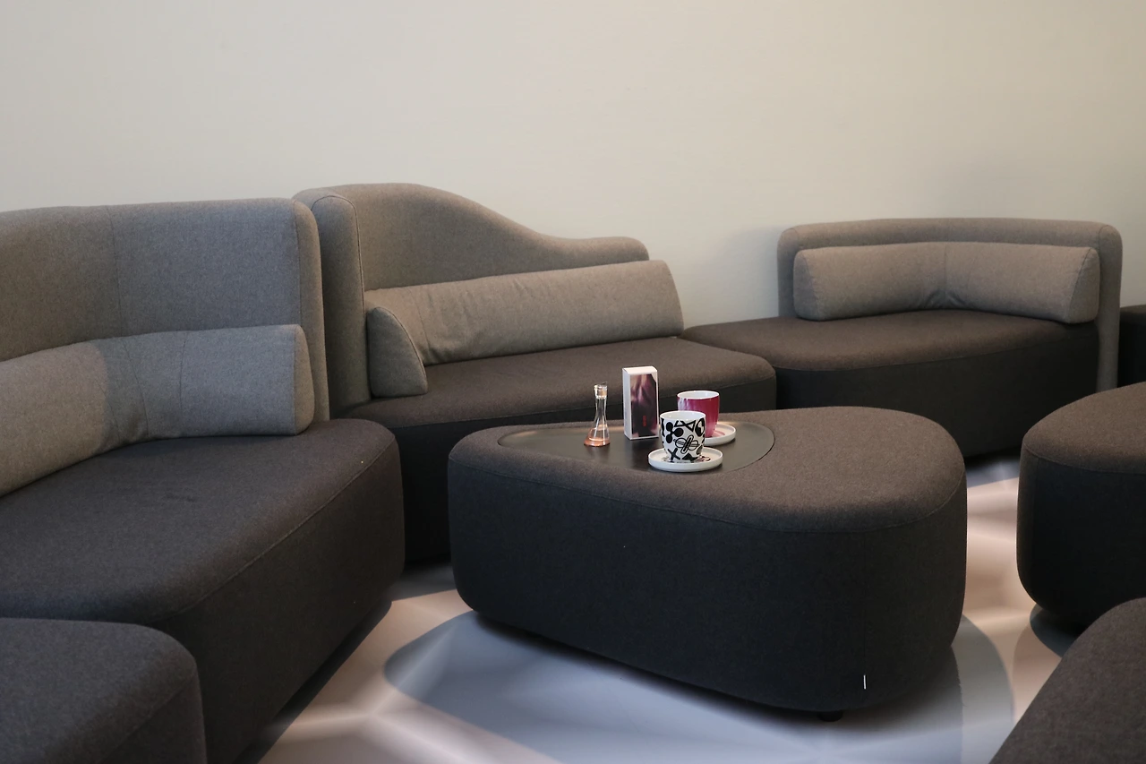 전시회의 도입부에서 가장 먼저 눈에 띄는 작품입니다. 이 의자는 2012년 핀란드 가구 회사 마텔라를 위해 디자인한 쿱 의자입니다. 마치 달걀을 연상시키는 모습이 인상적인데요. 작가는 쿱 의자를 자궁과 같은 공간으로 구현하고자 했습니다. 부드러운 구조의 이 작품은 앉는 사람에게 고요함과 편안함을 선사하고 자기에게만 보장된 공간이 있다는 것을 일깨워줍니다. 평온한 환경에서 인간은 더 높은 생산성을 발휘한다고 하는데요. 쿱 의자는 휴식의 공간이 될 뿐만이 아니라 자칫 딱딱해질 수 있는 비니지스 공간에도 부드럽고 따뜻한 기운을 불어넣어 줍니다.