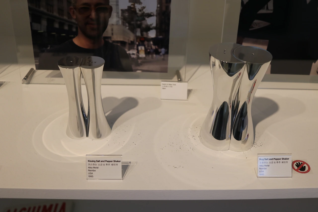 작가는 최고의 아름다움이란 '아름다움'과 '기능성'을 동시에 갖춘 것이라고 생각했습니다. 때문에 식탁 위에서 흔히 볼 수 있는 소금병, 후추병이라말로 가장 좋은 작품이 될 수 있다고 생각했다고 하는데요. 작가는 한 쌍의 양념통에서 사랑하는 남녀를 떠올렸습니다. 흑백의 컬러를 사용하고 메탈로 마감하면 더 아름다워질 것이라고 생각했죠. 그렇게 1995년 자신을 대표하는 작품을 세상에 내놓았습니다. 90년대 초 뉴욕에서 홀로 서기를 시작한 젊은 디자이너 카림 라시드에게 기회를 준 대표작입니다. 소금 후추 쉐이커는 10년이 지난 후에도 베스트셀러 일만큼 전 세계적으로 큰 성공을 거두었는데요. 작가가 특히 아끼는 이 컬렉션은 현재 여러 박물관에 소장되어 있습니다.