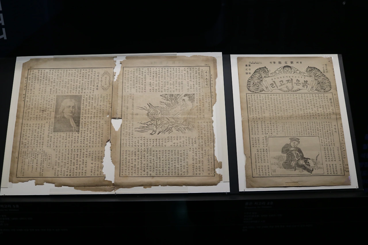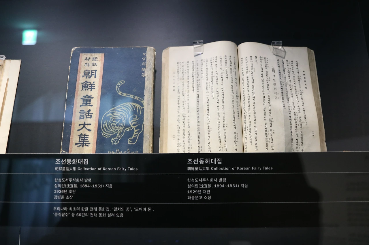 전시 1부에서는 한글 전래 동화가 걸어온 길을 살펴볼 수 있습니다. 일제 시대 장차 민족의 미래를 짊어질 어린이의 존재를 주목하게 되면서, 어린이를 하나의 인격체로 존중하는 사회적 인식이 형성됩니다. 이에 따라 어린이를 계몽하는 방법으로 어린이 문학이 발전하게 되는데요. 아동 문학과 소년 문학의 개념이 이 시절 창간된 잡지들 속에서 확인됩니다.