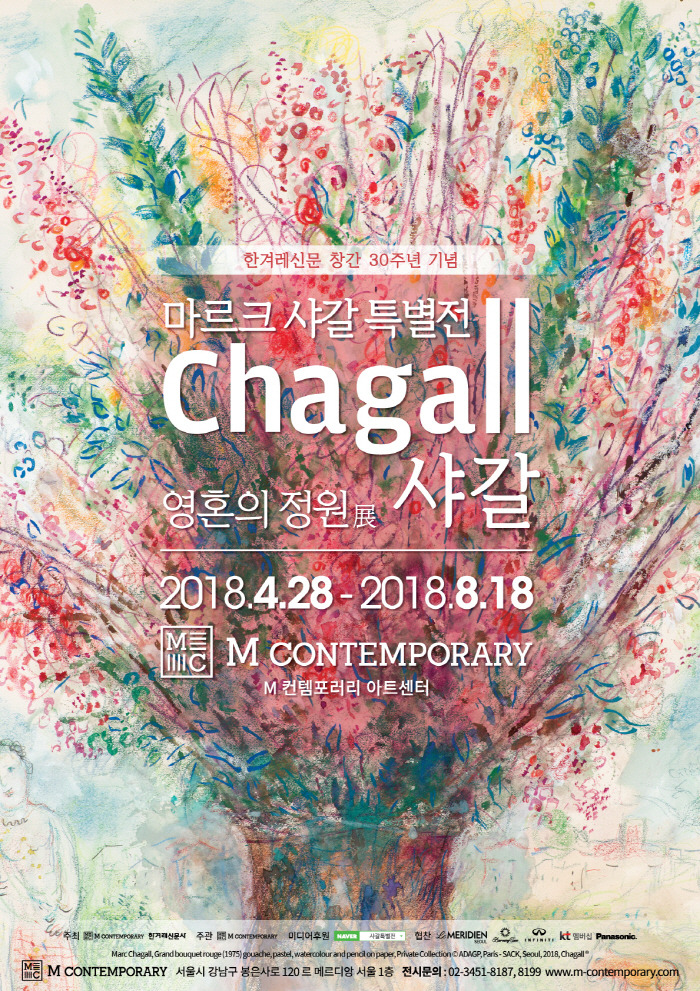 샤갈을 다시 한번 볼 수 있는 기회가 생겼다. 강남 M컨템포러리 아트센터에서 열리는 <마르크 샤갈 특별전 – 영혼의 정원展>이 그것이다. 이번 전시는 그동안 국내에서 쉽게 접하지 못한 다수의 작품을 포함한 것으로 알려져 있다. 샤갈의 삽화집 속 일러스트레이션 작업과 서사적인 판화 시리즈들을 감상할 수 있는 보기 드문 기회이다.