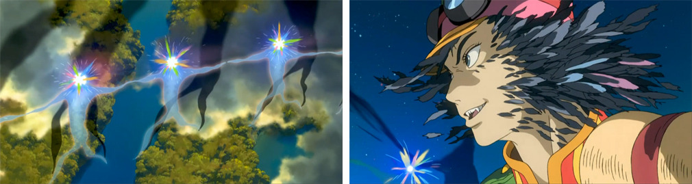 여기에서 또 하나의 의미가 더해진다. 마법사 하울에게는 심장이 없다. 정확히 말하자면, 심장을 다른 무언가에 종속시킨 채 살아가는 것이지만 말이다. 어렸을 적 계약하면서 캘시퍼에게 주어버렸으니 그는 어떤 의미에서 ‘심장 없는 인간’, 즉 ‘마음을 상실한 인간’이다. (마음이 심장에 깃들어있다는 생각은 동서양이 일치한다.) 심장의 부재는 하울과 보통 사람을 구별 지으면서 그의 초인적인- 비인간적인- 면모를 부각한다. 그는 내 안의 신성한 불꽃을, 가장 본질적인 것을 온전히 소유하지 못한 채 살아간다. 시간이 흐를수록 인간 본연의 마음을 상당 부분 잃어버린 하울은 그래서 우는 법도 잊어버린다. “(괴물로 변한 장병들을 가리키며) 나중에 울게 되겠군. 이제 인간으로 돌아올 수 없거든.(캘시퍼曰) “우는 것도 잊어버리게 되지.(하울曰)” 울고 싶어도 울지 못하는 마음. 그래서 역설적으로 누구보다 울고 있는 마음인 남자. 황무지 마녀가 하울의 비밀-심장을 매개로 불꽃 마귀 캘시퍼와 계약함-을 알고 있었을까? 그렇지 않다고 하더라도 그녀는 직감적으로 진실을 꿰뚫어 보고 있다.