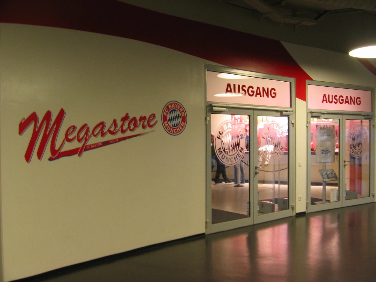 (좌) 바이에른 뮌헨의 홈구장 알리안츠 아레나 (우) 유니폼과 각종 기념품을 판매하는 메가 스토어