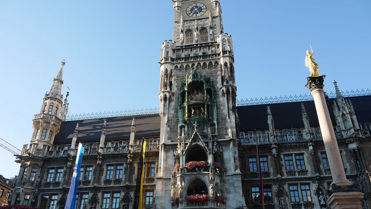 숙소는 뮌헨의 중심에 있는 마리엔 플라츠 근처로 잡았습니다. 마리엔 프라츠는 뮌헨에서 가장 유명한 관광지 중 하나입니다. 이곳은 도시가 형성되던 시기부터 역사를 이어오던 곳인데요. 당시에는 여느 유럽의 중심지와 마찬가지로 시장으로 이용되었다고 합니다. 마이엔 플라츠에는 성모 교회와 성 베드로 교회, 쌍둥이 건물이 특색 있는 푸라우엔 교회, 그리고 뮌헨의 상징인 뉘에 레쉬타트(신 시청)가 있습니다. 특히 뉘에 레쉬타트는 마리엔 플라츠에서 가장 눈에 띄는 건물로, 높이 85미터의 탑에서 매 시간 정각마다 종소리와 함께 작은 공연이 열립니다. 그래서 매 시간 정각마다 마리엔 플라츠 광장에는 이 공연을 보기 위해 많은 관광객들로 붐빕니다.