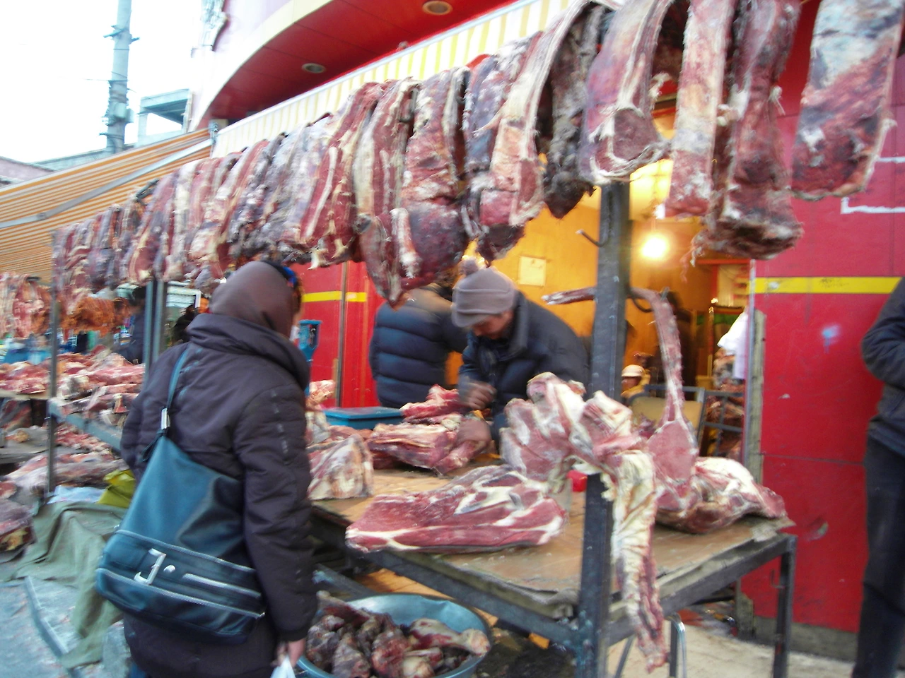 티베트에서는 고기를 실온에 그대로 매달아 팔고 있었다