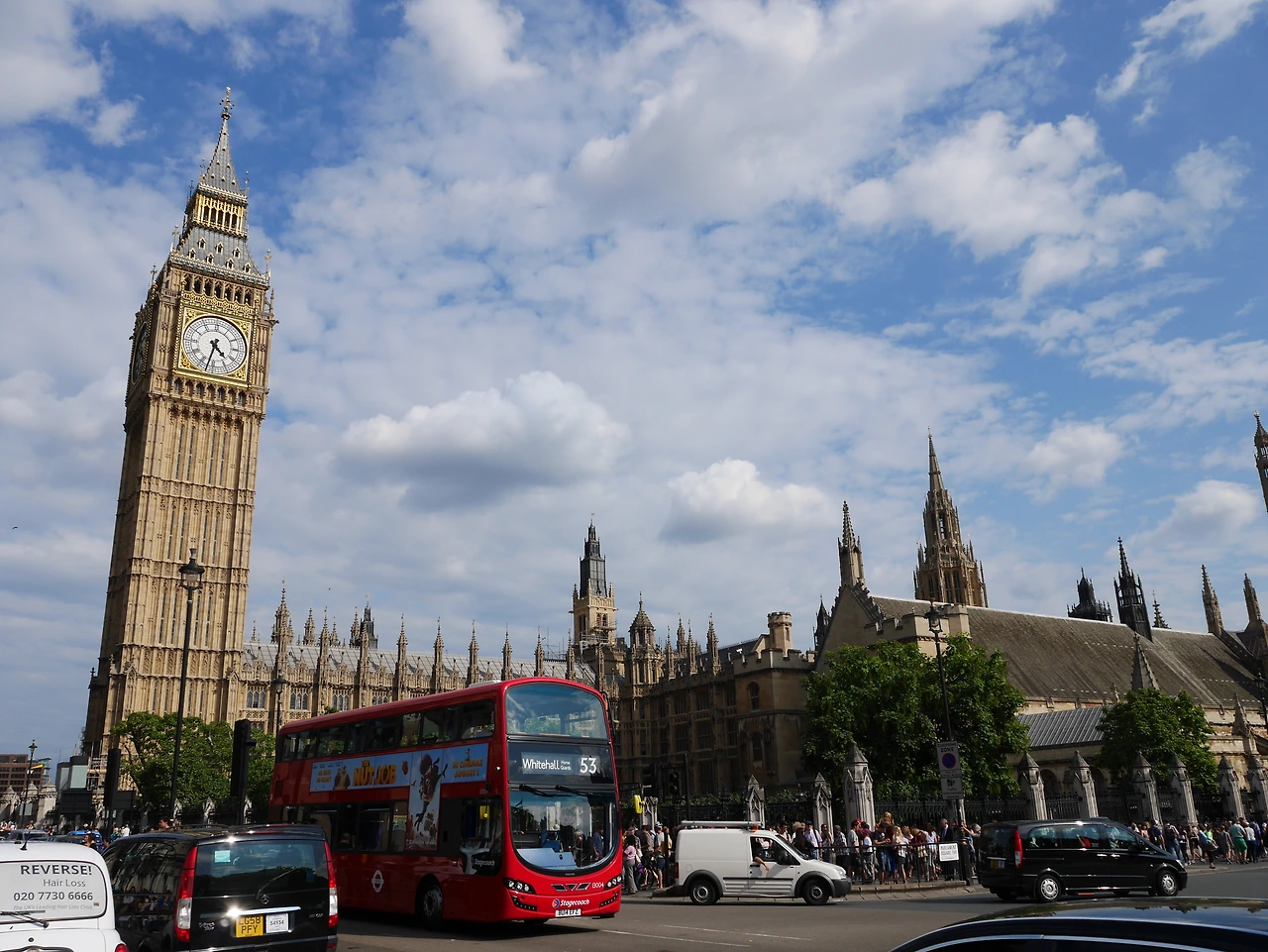 런던의 상징 빅벤과 빨간 이층 버스