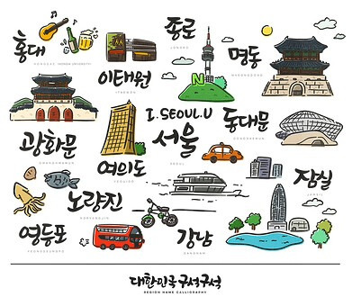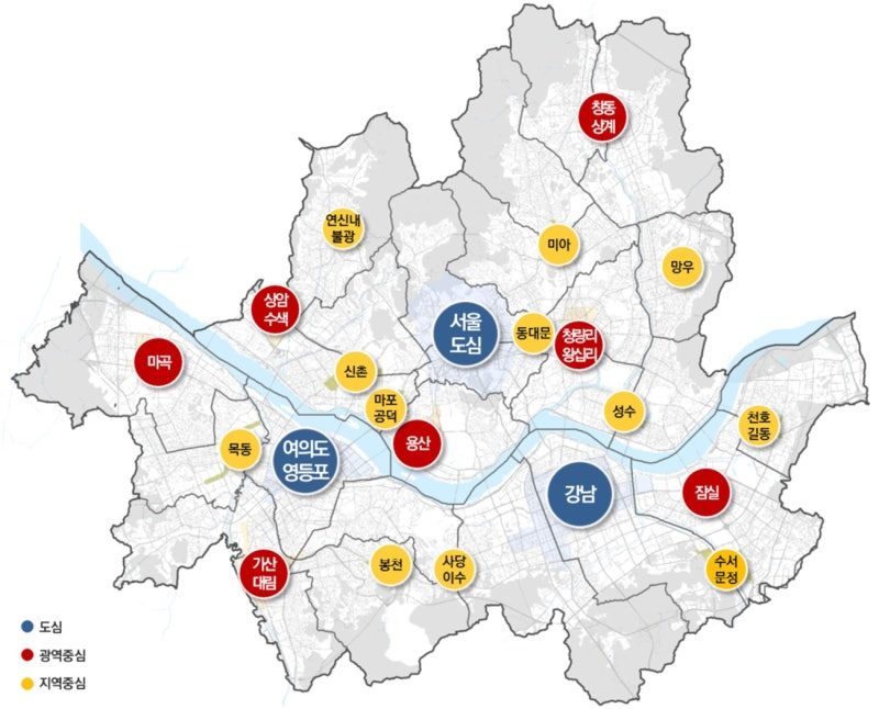(좌) 서울의 중심지 체계, (우) 서울의 랜드마크들