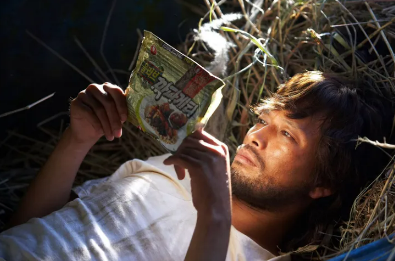 이 말도 안 되는 고립 속에서 주인공 김씨는 역설적이게도 살아갈 이유를 찾기 시작합니다. 버려진 오리배를 개조해서 집을 마련하고, 새똥을 거름 삼아 텃밭을 일굽니다. 그리고 한강의 물고기를 낚시하며 점점 도시 속 무인도에서의 자급자족 생활에 적응해 나가죠. 그리고 그에게 결정적으로 삶의 목표가 하나 생기게 됩니다. 그것은 바로 짜장면을 스스로 만들어 먹는 것입니다. 그 발단은 우연히 발견한 짜장라면 봉지에 있던 분말스프였습니다. 그는 직접 키운 옥수수와 밀로 면을 만들어서 결국 짜장면을 만드는 데 성공하고 맙니다.